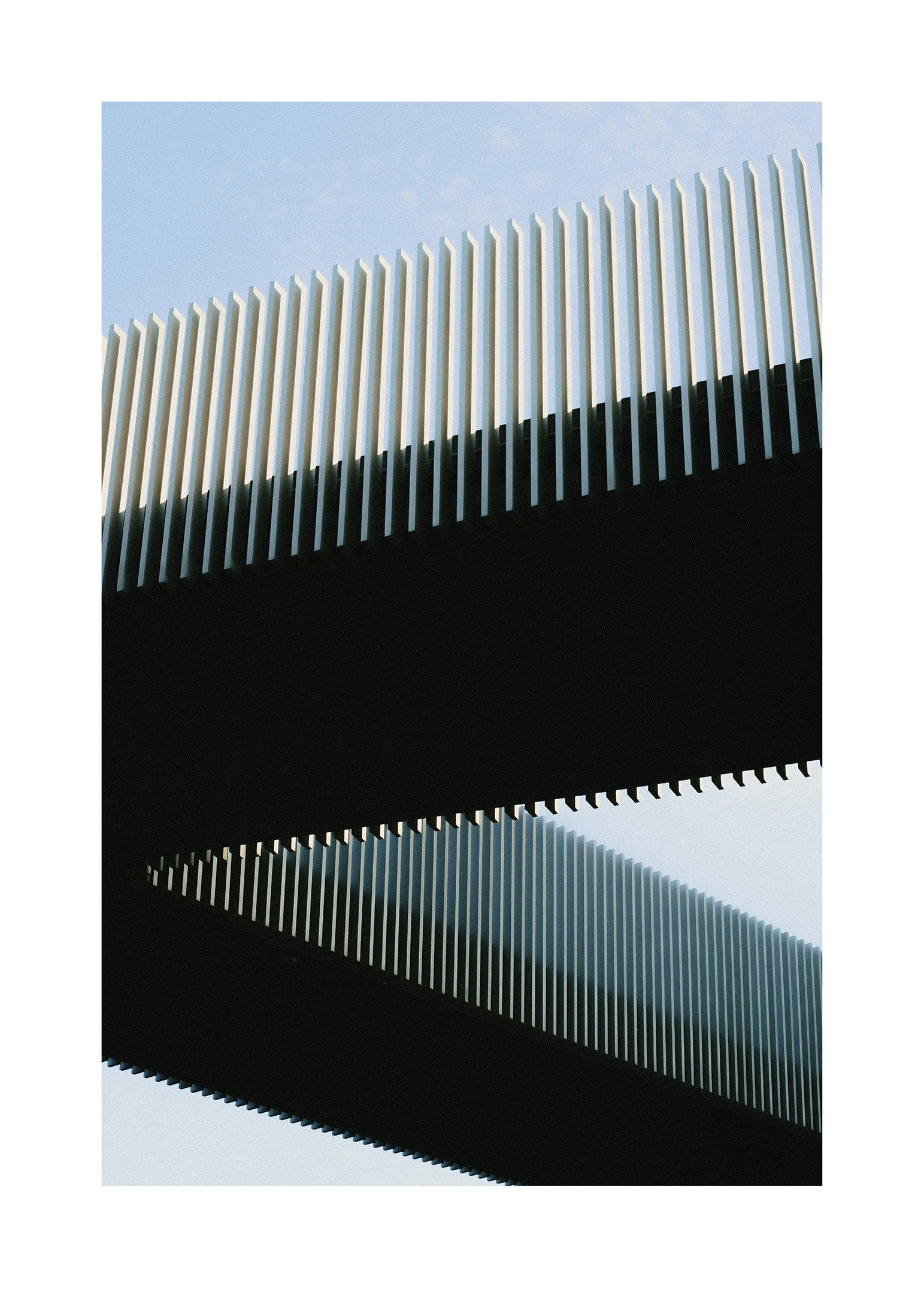 Ett stilrent fotografi av en bro med distinkta linjer och modern form. Passar perfekt i en avskalad och arkitektoniskt inspirerad inredning.