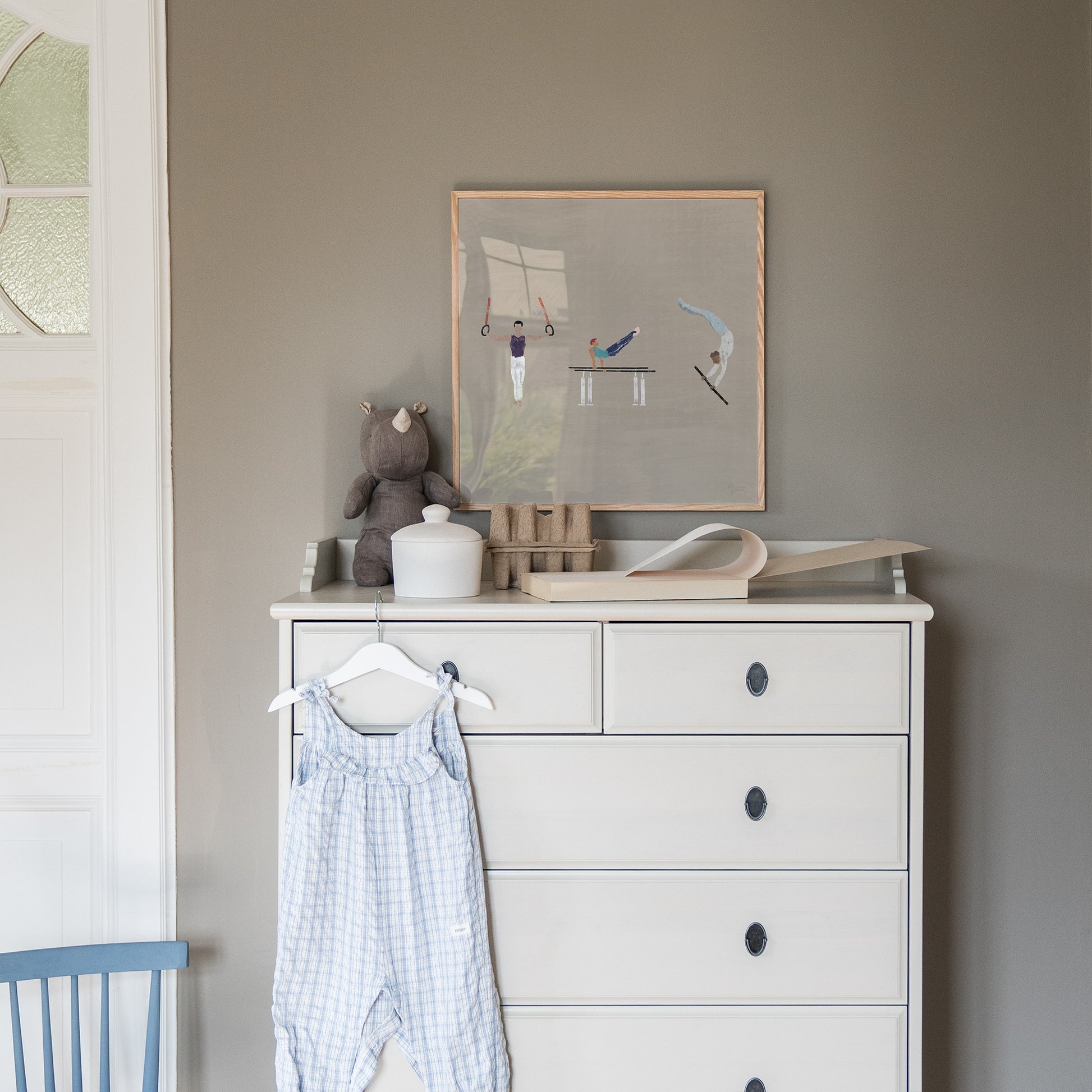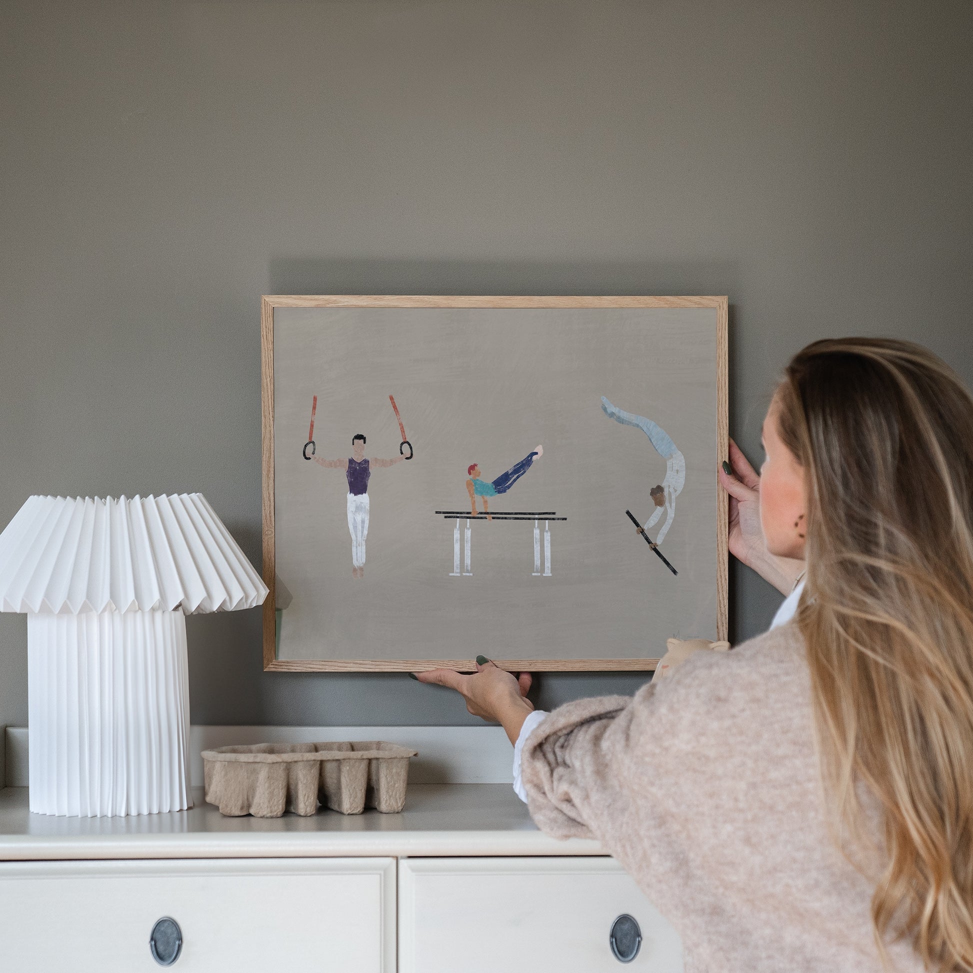Fånga barnens energi och rörelseglädje med vår Aktiva gymnaster poster. Motivet visar en grupp gymnaster i full aktivitet, vilket skapar en inspirerande och livlig atmosfär i barnrummet. Perfekt för att uppmuntra till lek och rörelse, och en idealisk barntavla för små sportfantaster som älskar att vara aktiva.