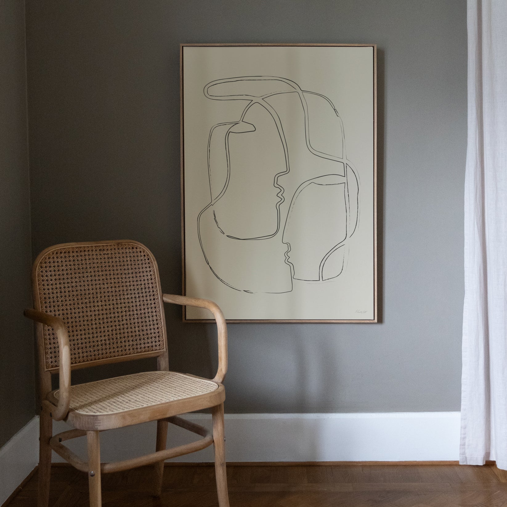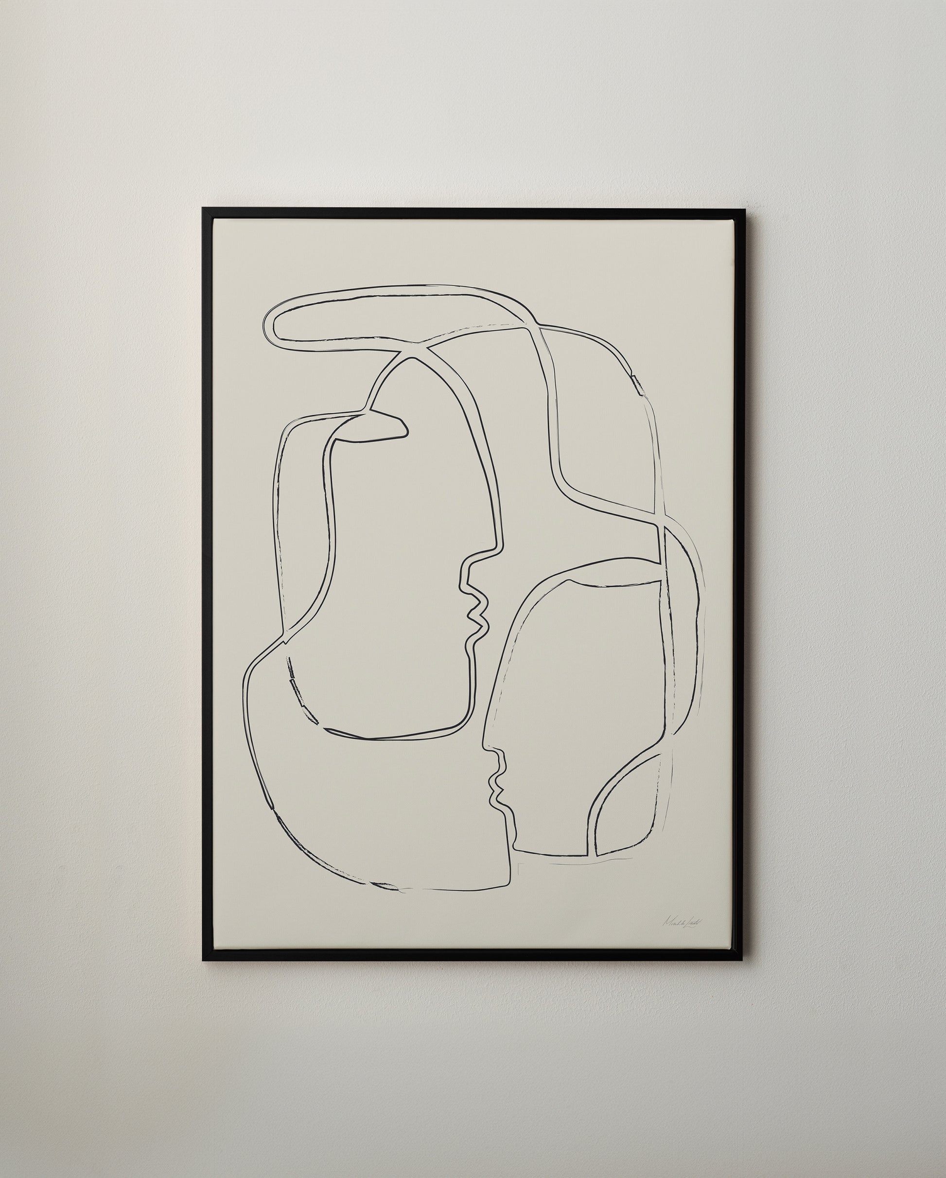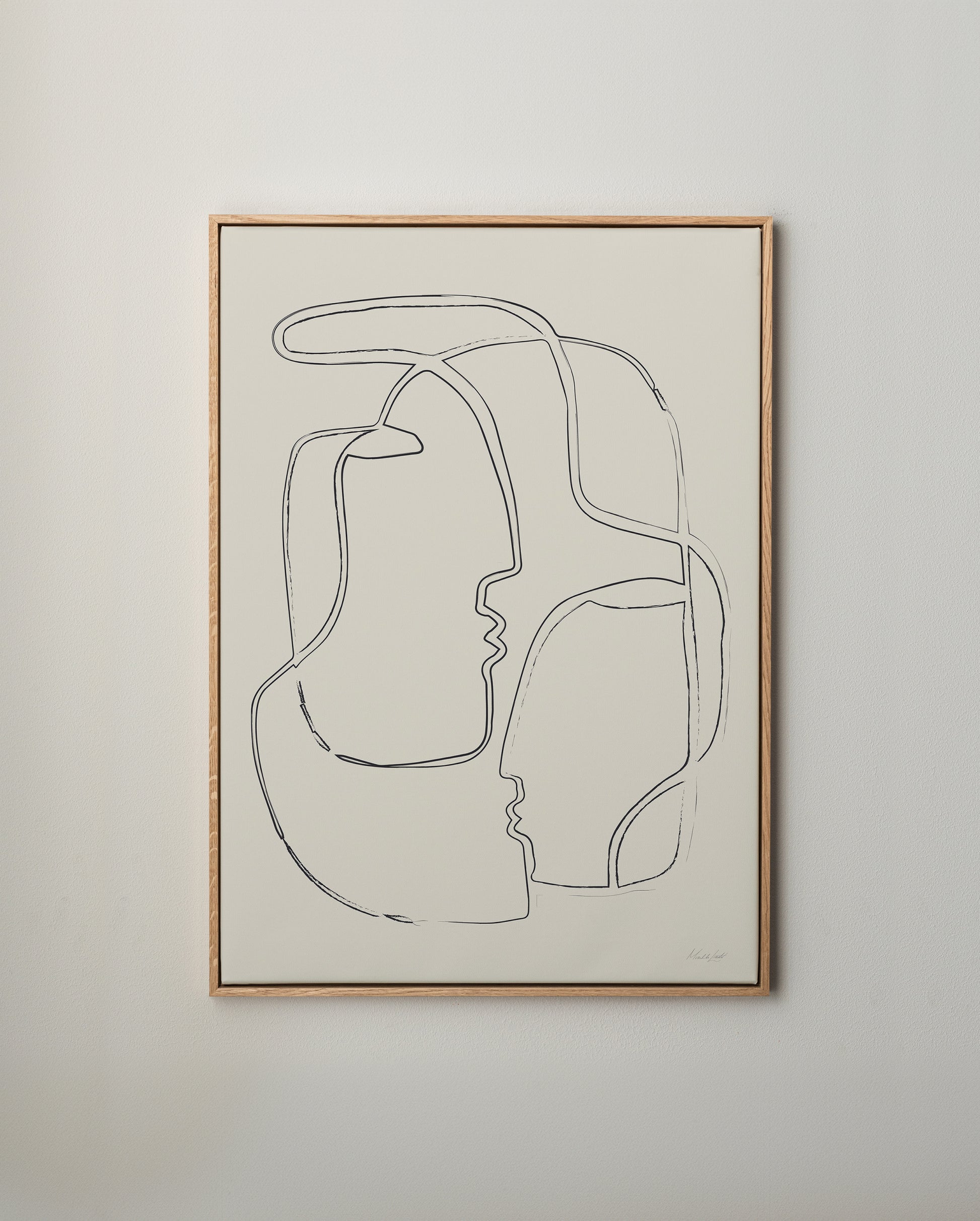 Canvastavla med motivet Ansikte mot ansikte av kreatören Michaela Lindvert, inramad i en elegant floatram i ek.