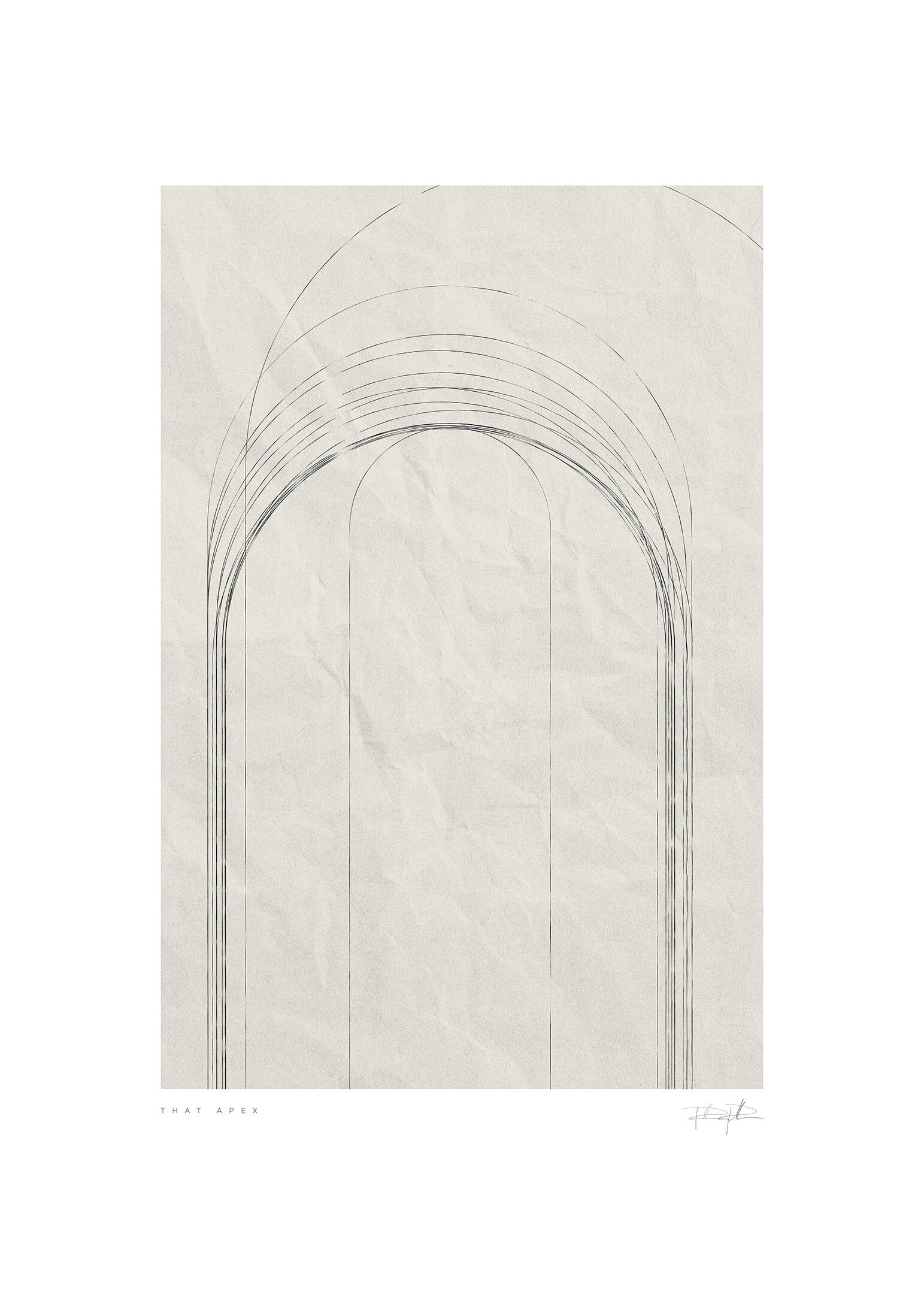 Med känslan kvar av blyerts mot pappret, ser man en tydlig form av upprepade spår. Det finns många olika spårval i livet, men bara ett som är optimalt – Apex. En abstrakt poster på en texturbakgrund ger motivet extra finess.