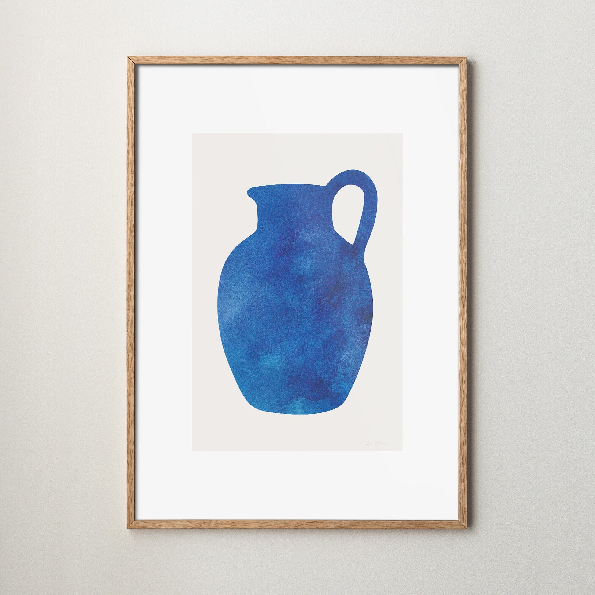 Grafisk poster med en karaff i blått, vars levande yta och kulörval utgör ett intressant uttryck. Passar perfekt till den avskalade, skandinaviska stilen, likväl som i en modern, lekfull interiör. Kombinera gärna med en annan grafisk eller fotografisk poster i samma färgtoner. Tips! Här rekommenderar vi en ram i ek för att framhäva motivet. Spana gärna in vår egen här – och kom ihåg: vi ramar gärna in postern åt dig!