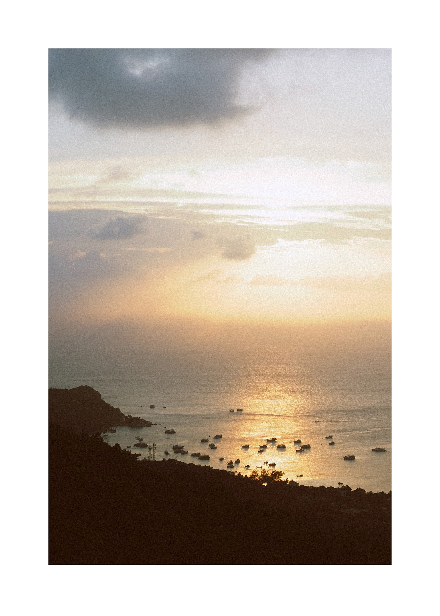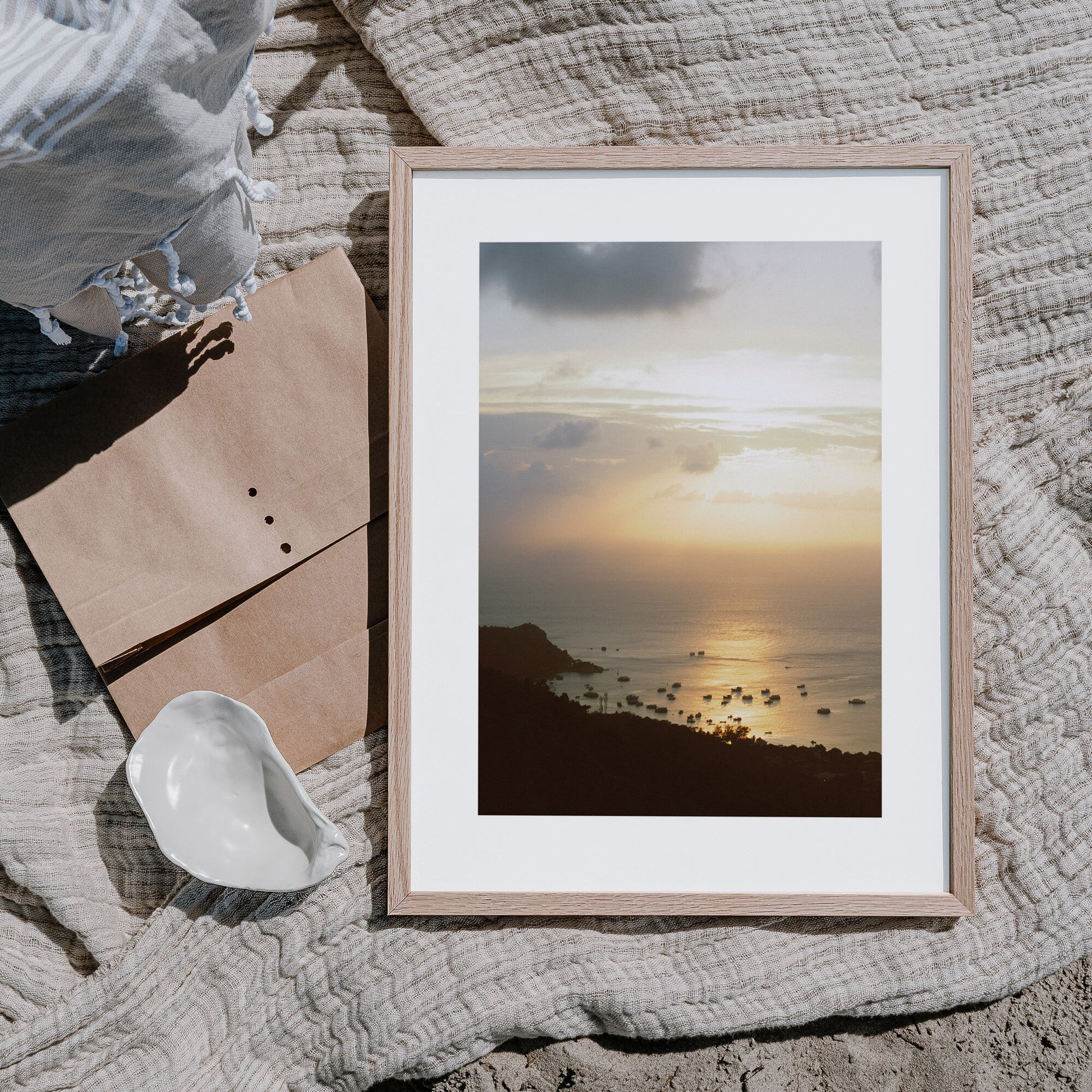Fånga känslan av en stilla sommarkväll med Förankrad fotoposter. Kluckande vatten, förtöjda båtar och en gyllene solnedgång skapar en harmonisk atmosfär som väcker minnen av semesterns lugn. En tidlös poster för dig som vill ta in känslan av hav och frihet i ditt hem.