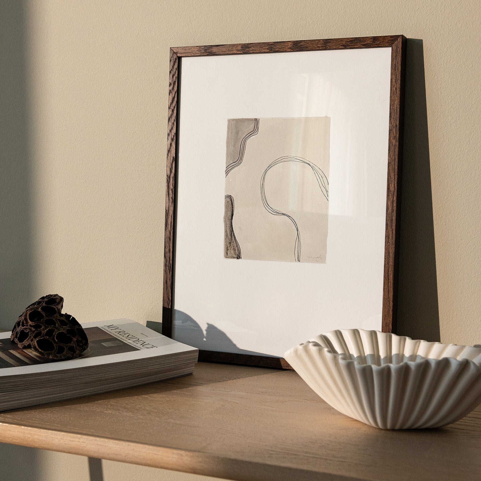 Abstrakt poster som illustrerar former i rörelse, där oregelbundna linjer och färgskiftningar tack vare vacker akvarellmålning skapar ett intressant uttryck.