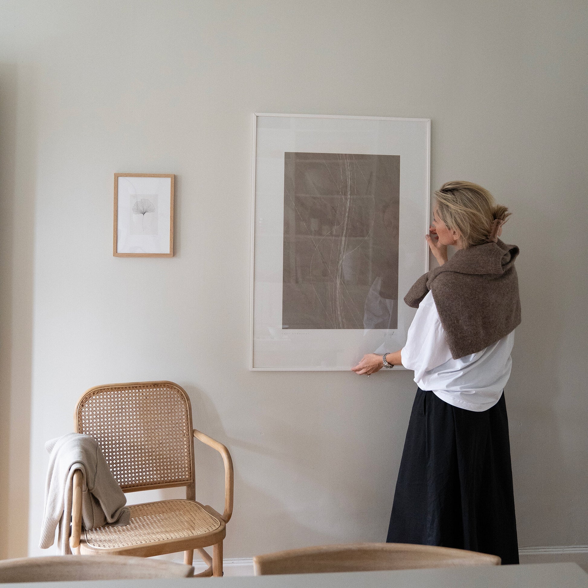 En minimalistisk poster med ett elegant ginkgoblad i svart mot en mjuk beige bakgrund. Det unika bladets solfjäderform och smala stjälk ger ett tidlöst uttryck som passar i de flesta miljöer. Finns även i grönt för en mer levande känsla. Perfekt att kombinera med andra botaniska motiv!