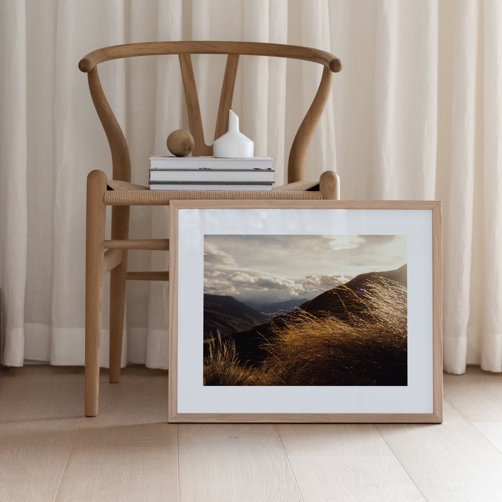 Bergskedjor längs med horisontlinjen. Med ett ljus som framhäver naturen och gör intrycket effektfullare. Perfekt för dig som vill väcka förnimmelser om fängslande naturupplevelser.