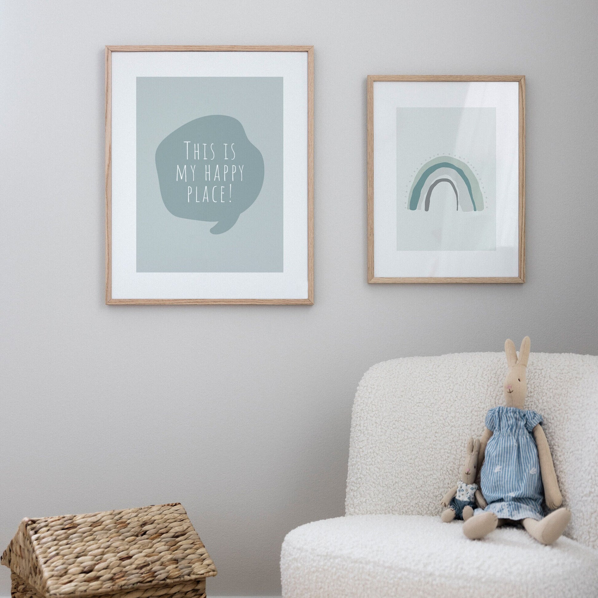 Skapa en harmonisk och glad atmosfär i barnrummet med postern This is my happy place! i en mjuk blå nyans. En lekfull och inspirerande tavla som passar perfekt ensam eller tillsammans med andra motiv för en personlig tavelvägg. Finns även i rosa för att matcha olika inredningsstilar.