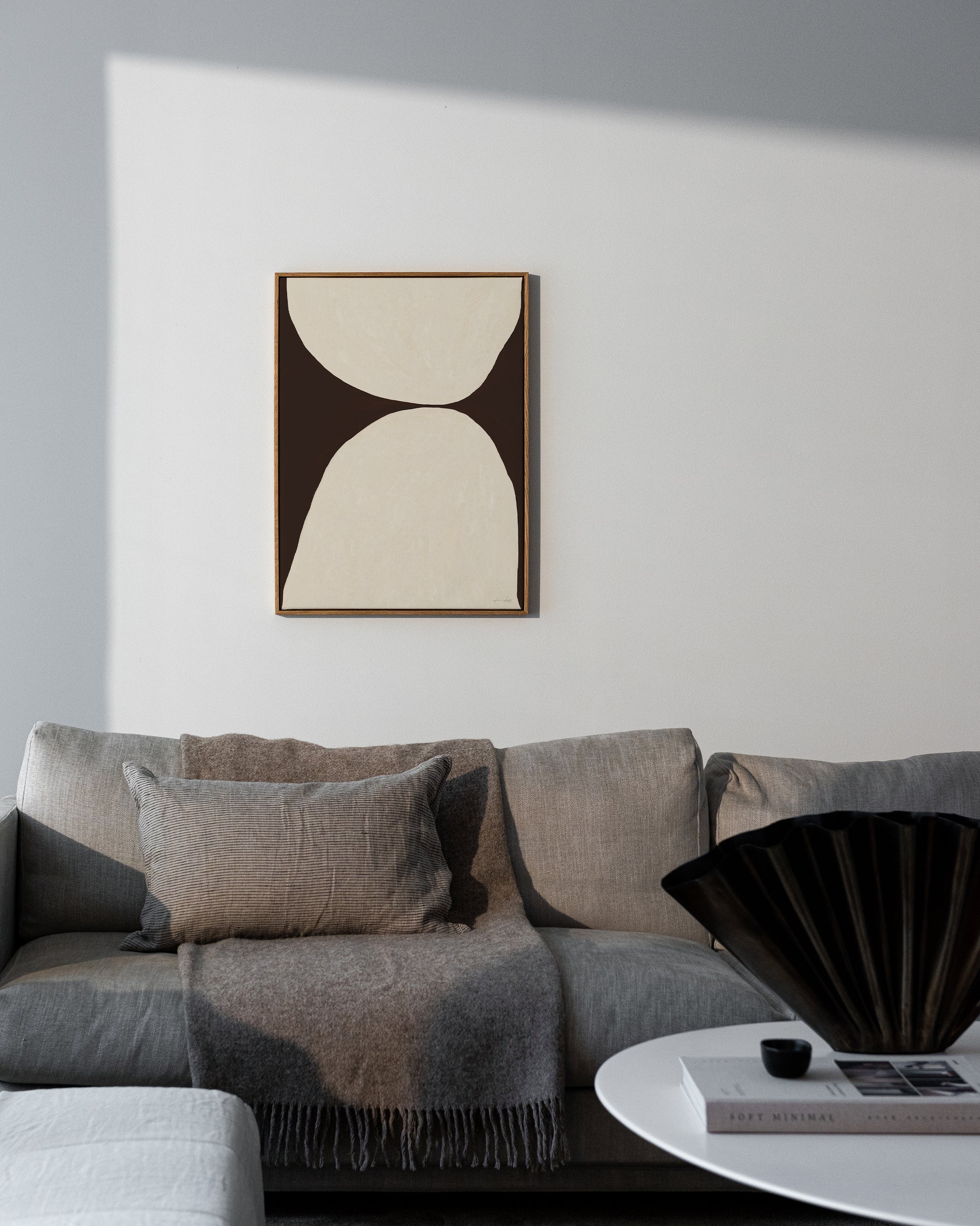 Canvastavla med motivet Harmoniska former av kreatören Melina Atterflod, inramad i en elegant floatram i ek.