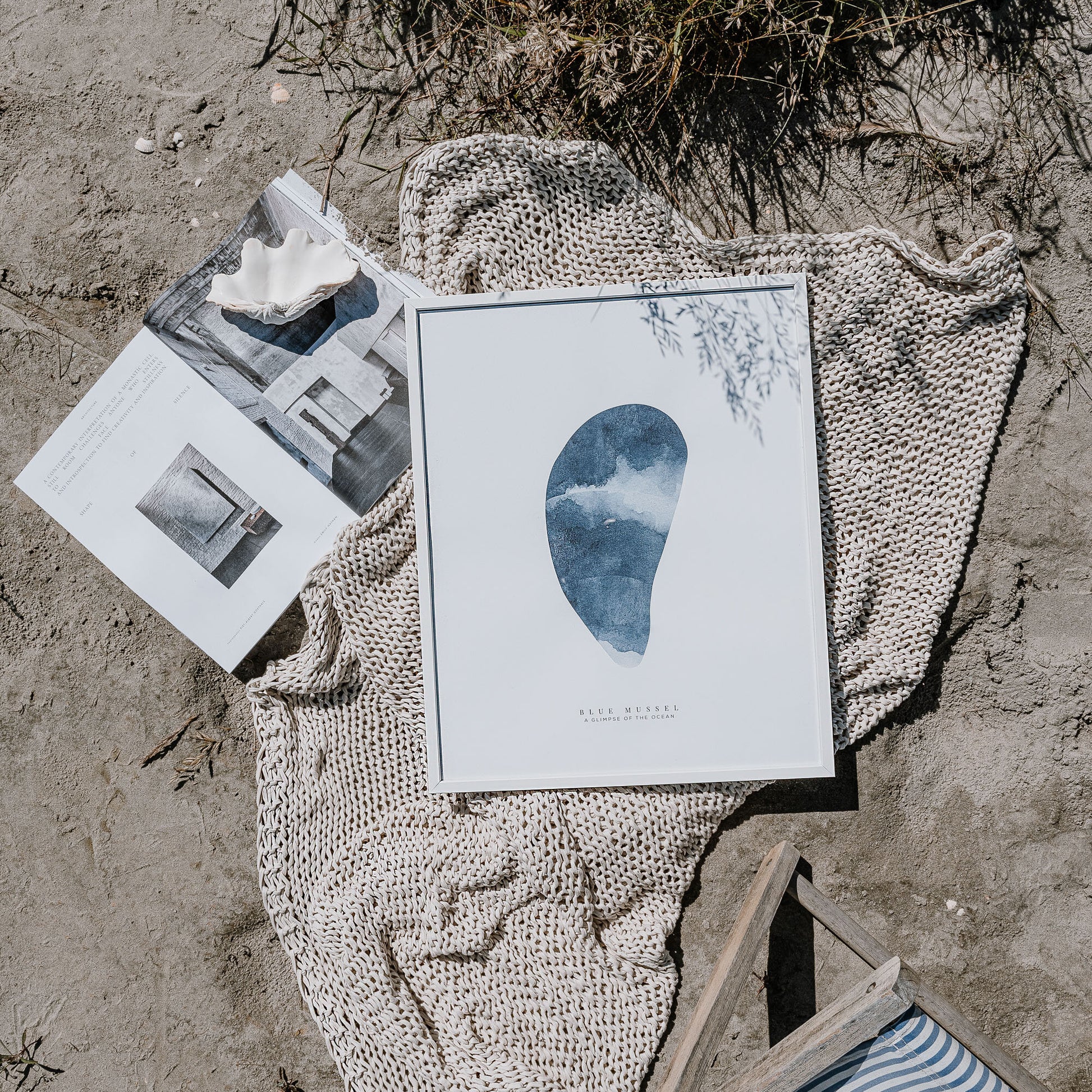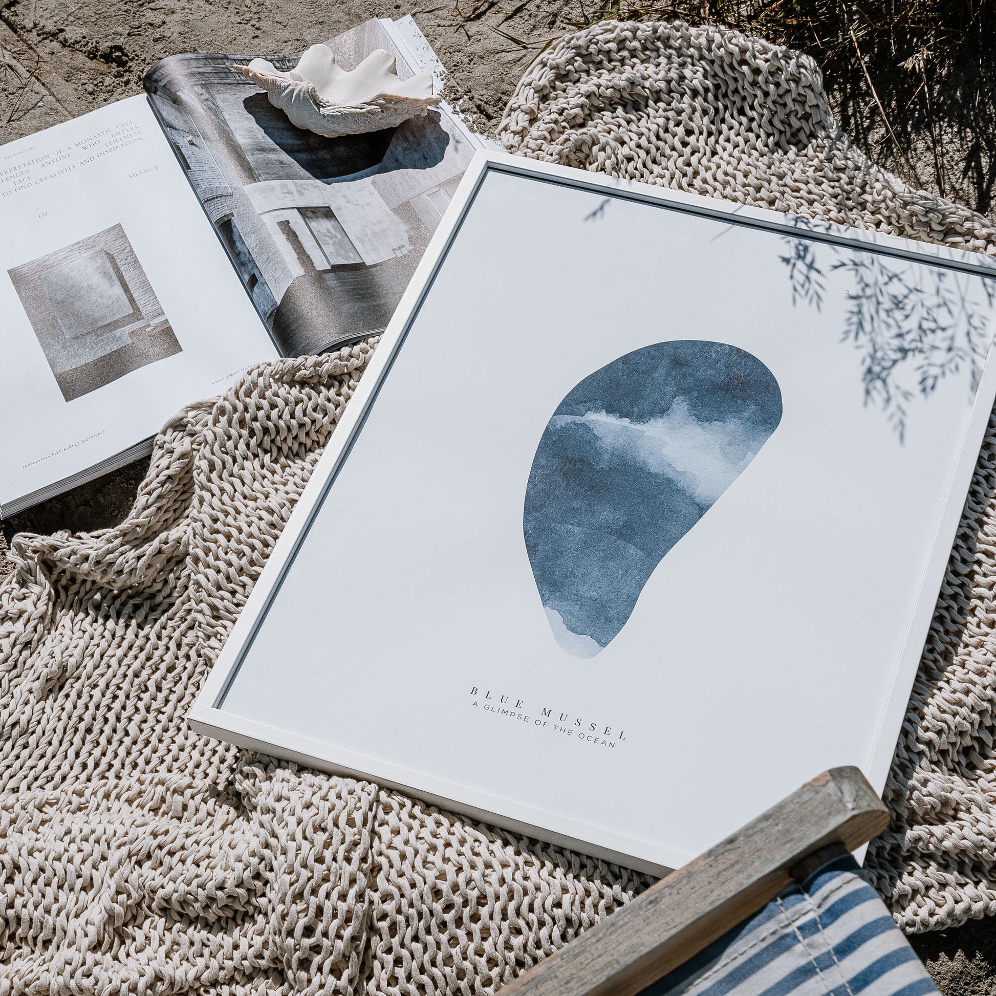 För in känslan av havets lugn med vår Havsmussla poster. Motivet är en stilren illustration av en mussla i djupa blå nyanser, som ger en harmonisk och avslappnande atmosfär. Passar utmärkt som inredningsdetalj i sommarhuset, vid havet eller i ditt hem för en marin touch. En tidlös design som skapar en subtil koppling till naturens skönhet och rogivande färgpalett.
