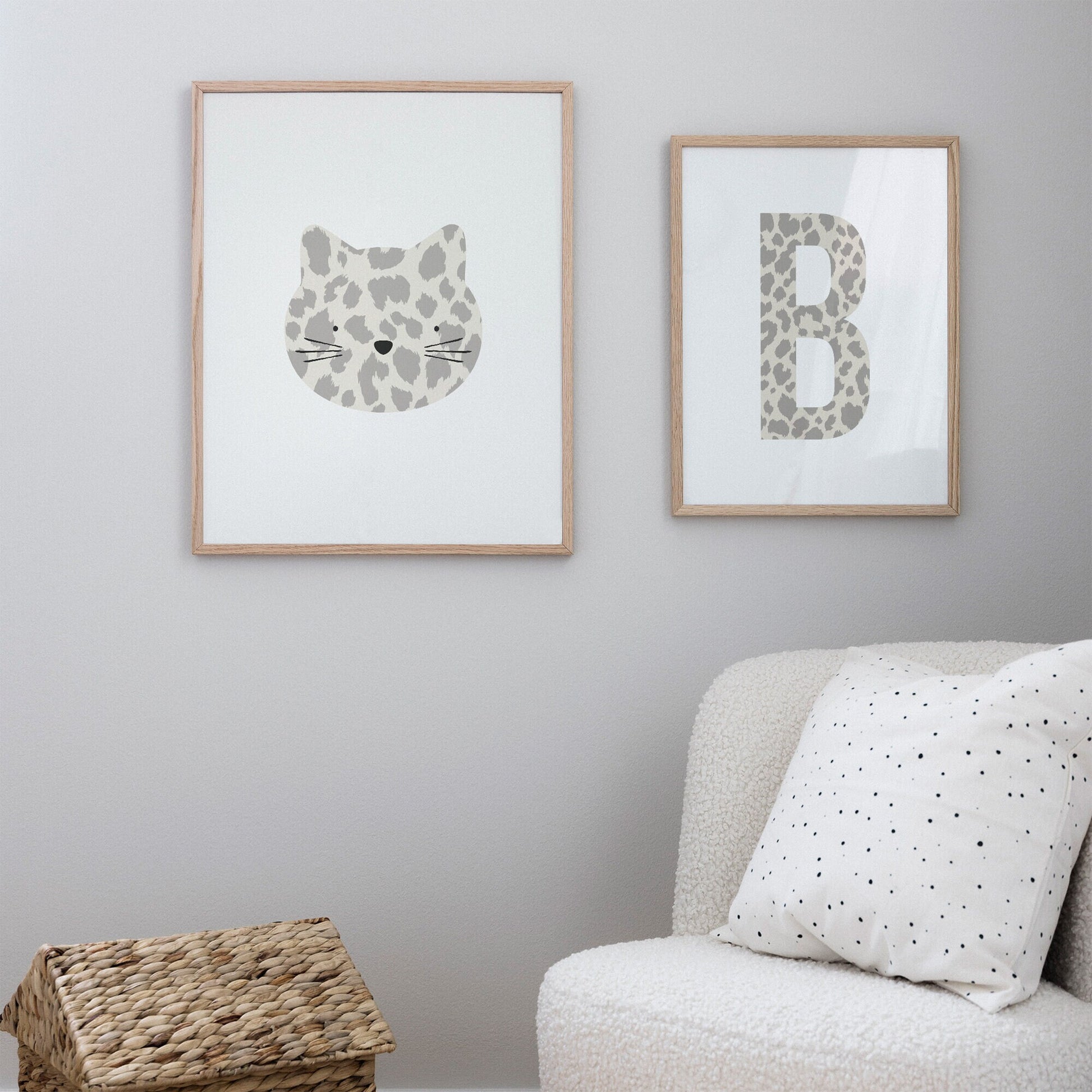 En stilren och charmig poster med en katt i grå toner mot en beige bakgrund. Det minimalistiska formspråket och den neutrala färgsättningen gör att motivet passar fint i de allra flesta barnrum. Perfekt för små djurälskare som vill ha en mysig och lekfull känsla i rummet. Fint att matcha med vår bokstavsposter i samma mönster för en enhetlig och personlig tavelvägg!