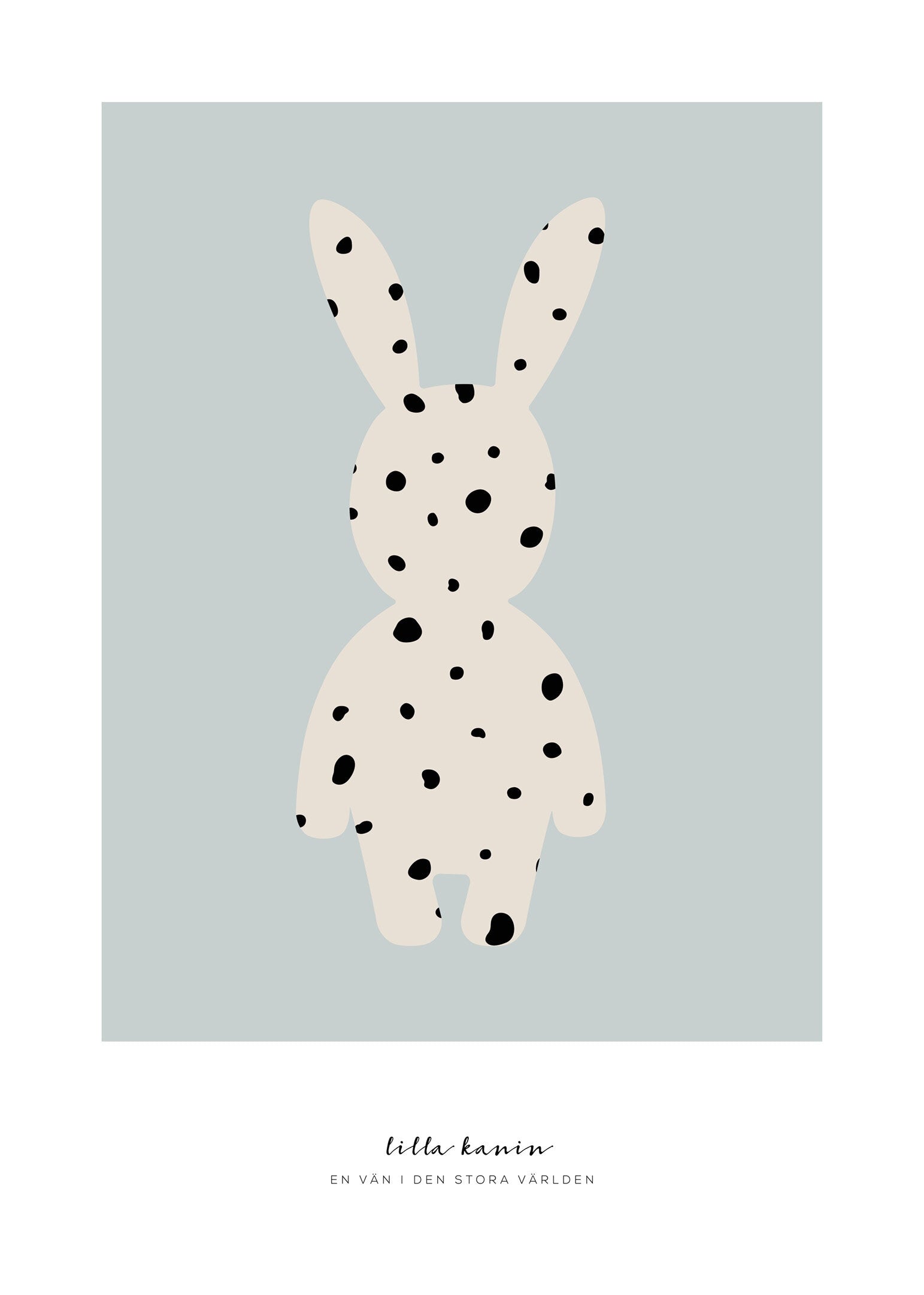 Lilla kanin är en vän i den stora världen. Mjuka färger kompletteras med busiga prickar, perfekt för det mysiga barnrummet. Dessutom är det en fin idé till doppresent, födelsedagspresent – eller gåva till den som väntar bebis.