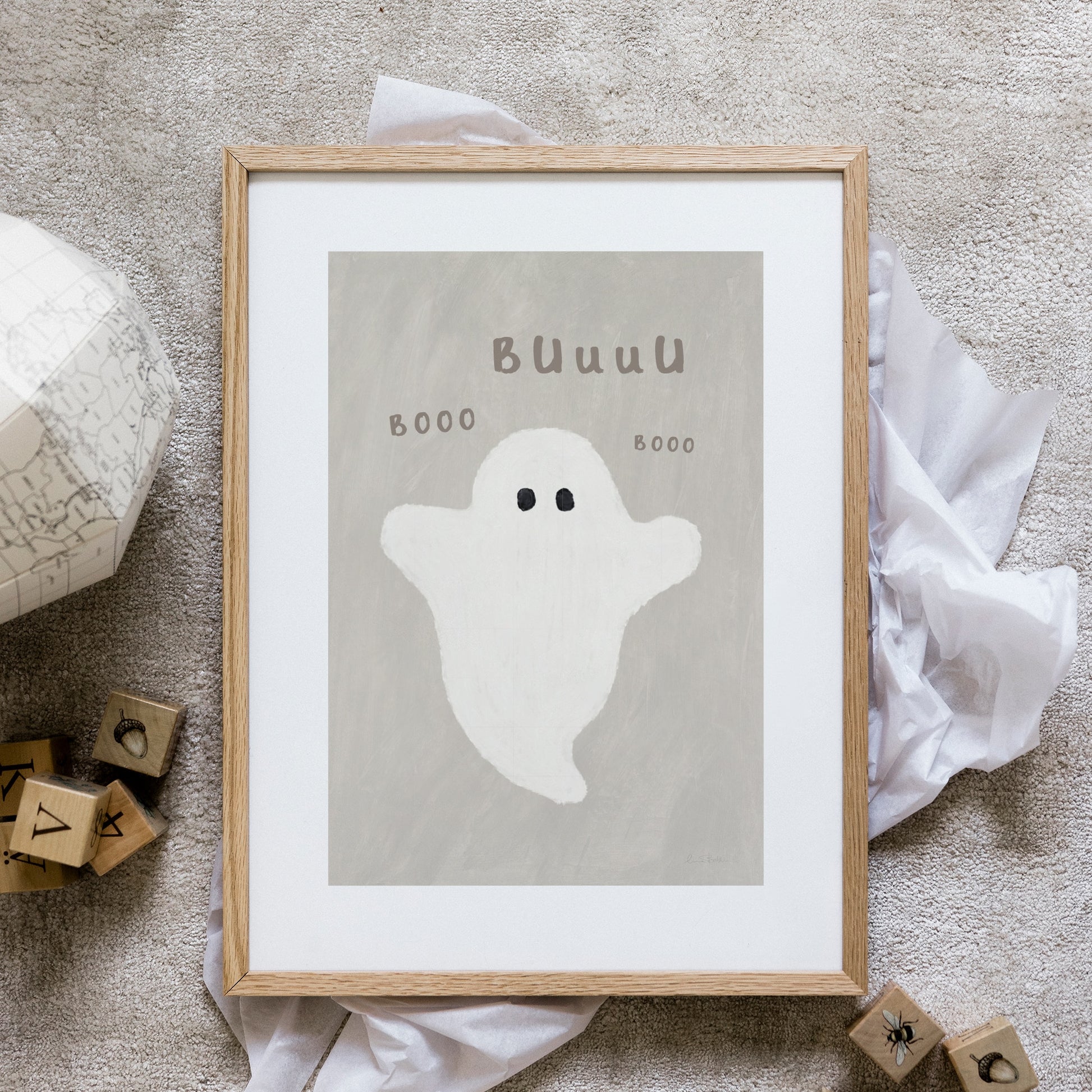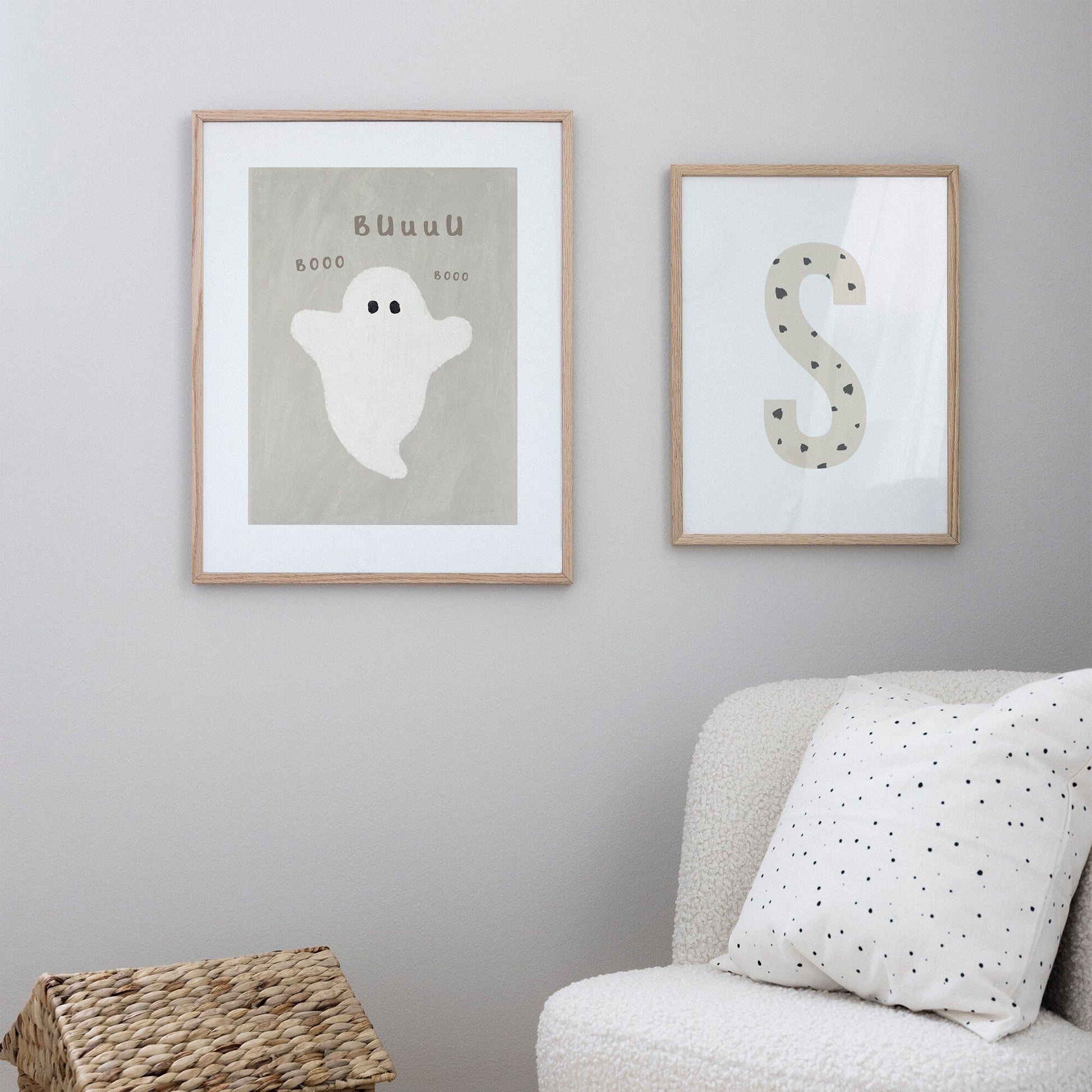 Ta med en lekfull Halloween-känsla till barnrummet med vår Lilla spöket poster. Detta söta lilla spöke viskar "Buuu" och "Booo", perfekt för att skapa en mysig, men ändå busig stämning för de små. Ett charmigt val för barn som gillar spännande teman utan att det blir för läskigt!