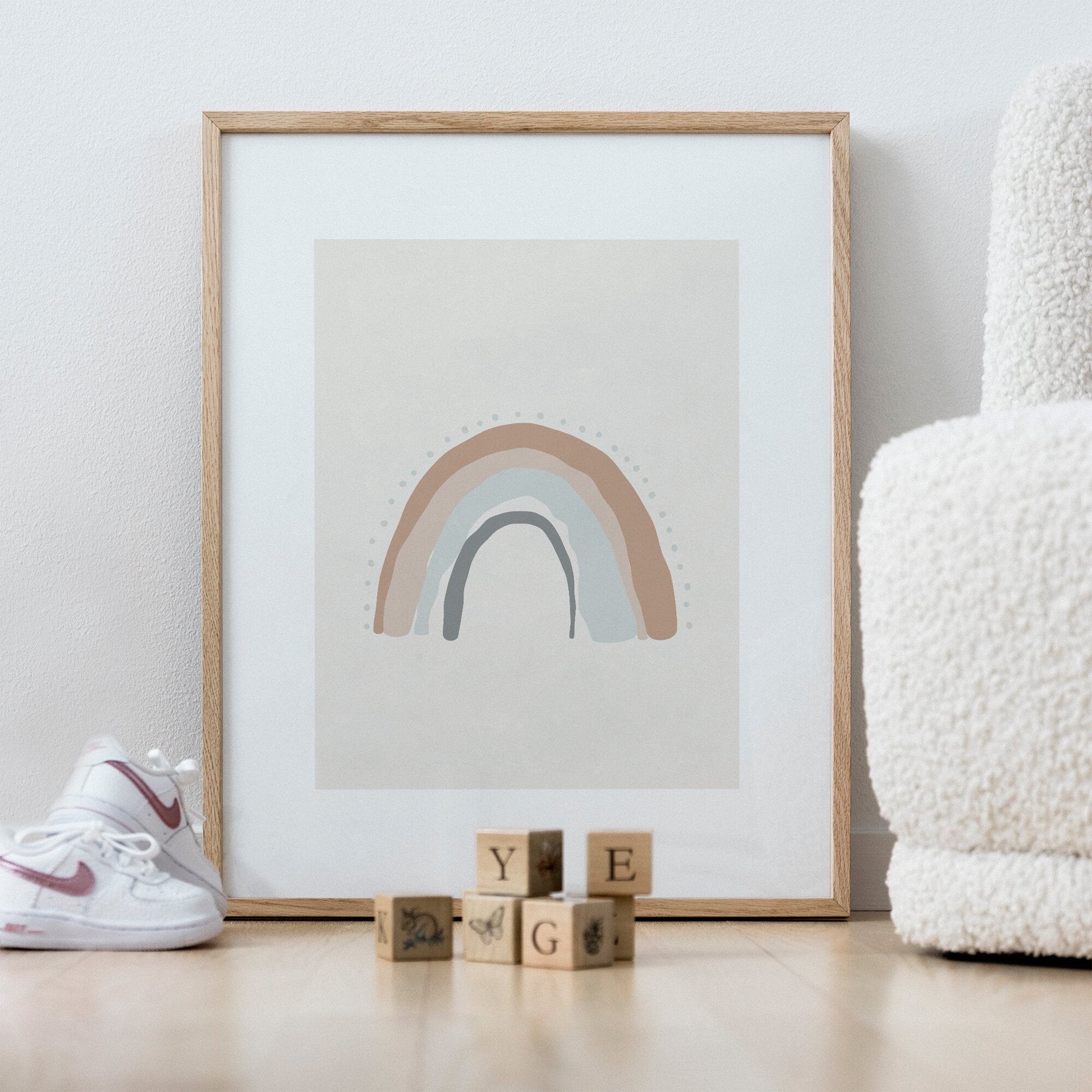 En söt och harmonisk poster med en regnbåge i mjuka nyanser av rosa, beige och grått. Passar fint i det allra första egna rummet eller en mysig liten hörna. Den lugna färgpaletten gör den lätt att matcha med andra motiv för att skapa en personlig och lekfull tavelvägg.