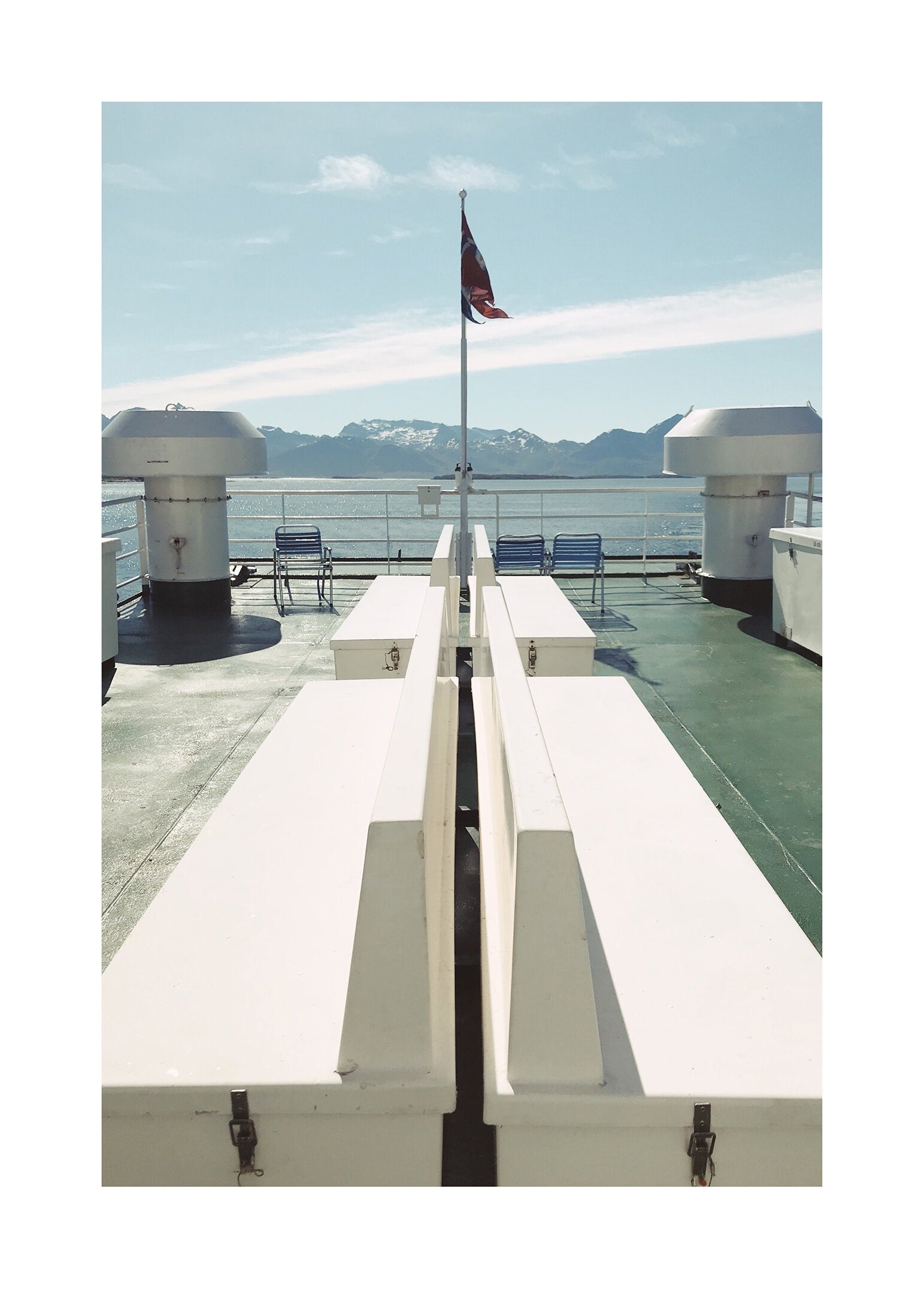 Lofotens kustväg poster är en hyllning till den sköna symmetrin och det natursköna landskapet i Norges ikoniska Lofoten. Motivet fångar en stillsam stund ombord på en båt med vyer över de majestätiska fjordarna och de omgivande bergen. Perfekt för den som vill addera en känsla av nordisk ro och struktur till sitt hem eller kontor. Denna fotokonst passar i både moderna och klassiska miljöer, där enkelhet och harmoni uppskattas.