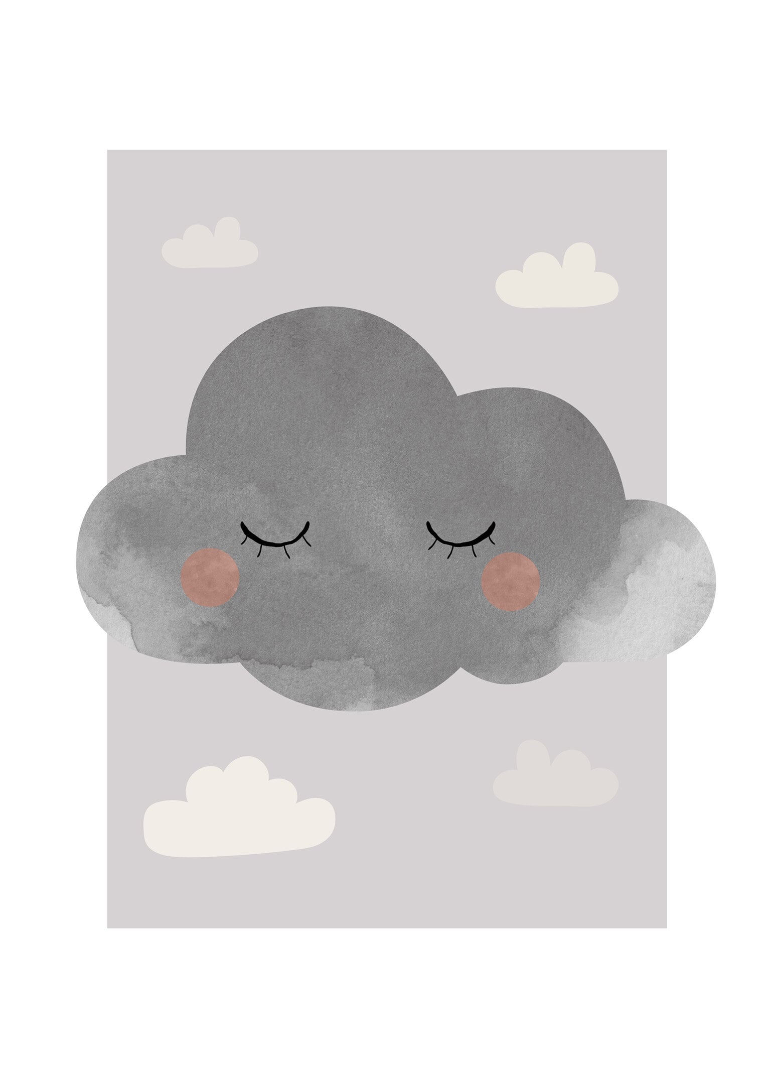 En charmig poster med ett sömnigt moln i mjuka, harmoniska nyanser. Den lugna färgskalan skapar en trygg och mysig atmosfär i barnrummet, perfekt för att rama in en rogivande miljö. De lekfulla detaljerna och det vänliga uttrycket gör den till en uppskattad dekoration för både små och stora drömmare.