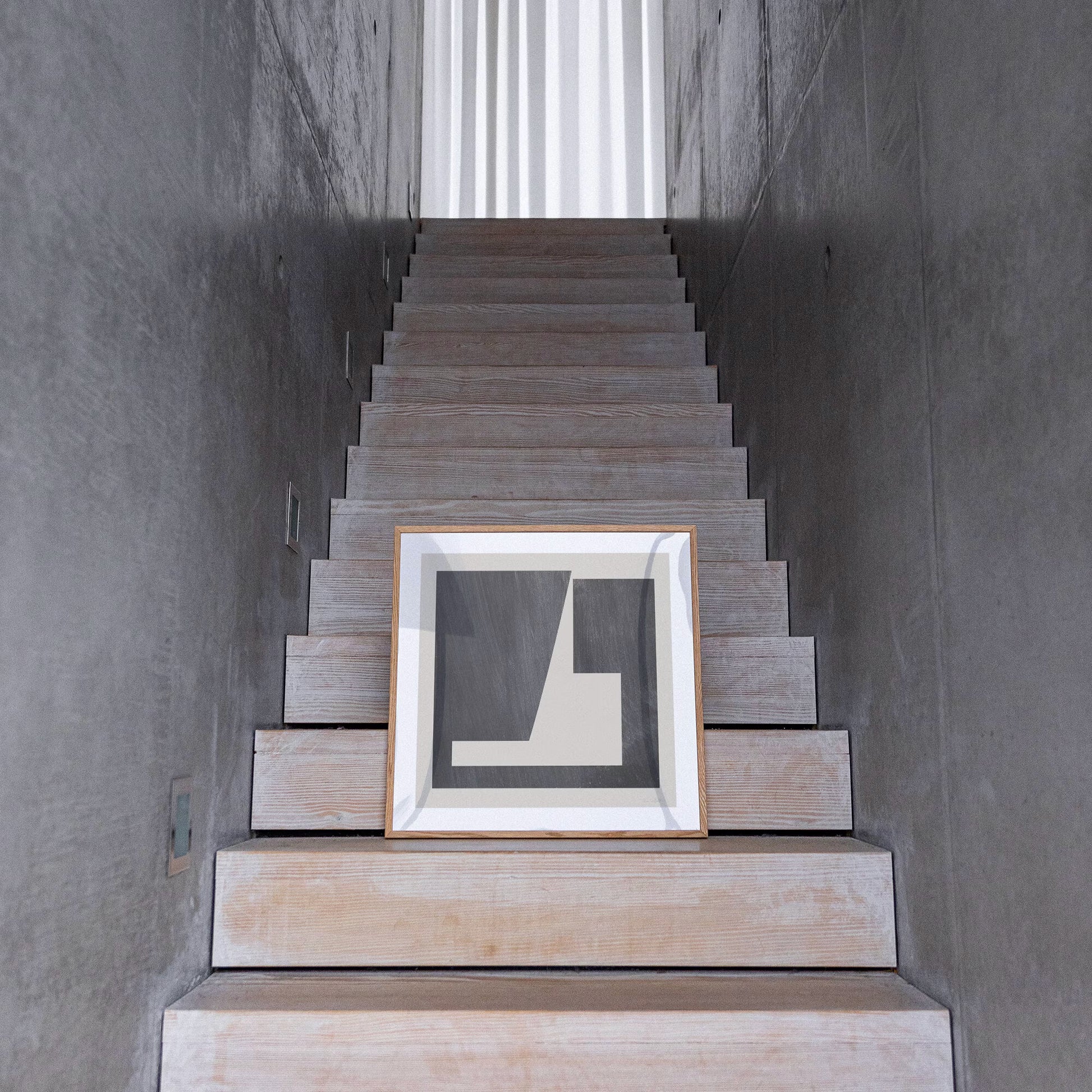 Grafiskt motiv med ett skönt oregelbundet formspråk, för en intressant helhet. Perfekt att väva in i tavelväggen som går i samma färgskala.