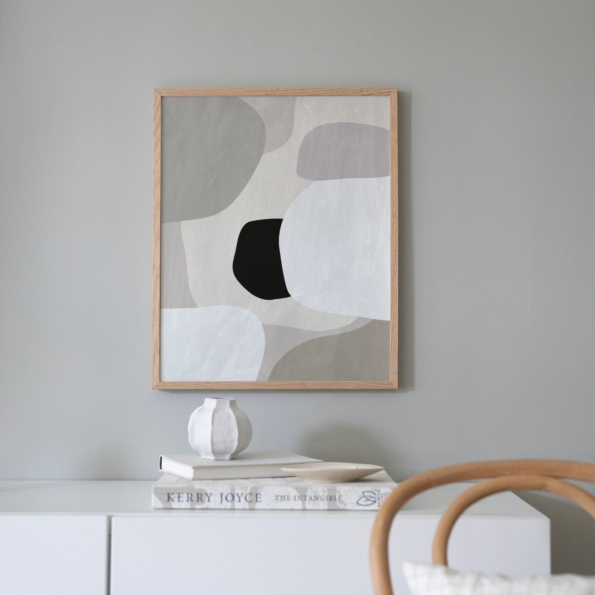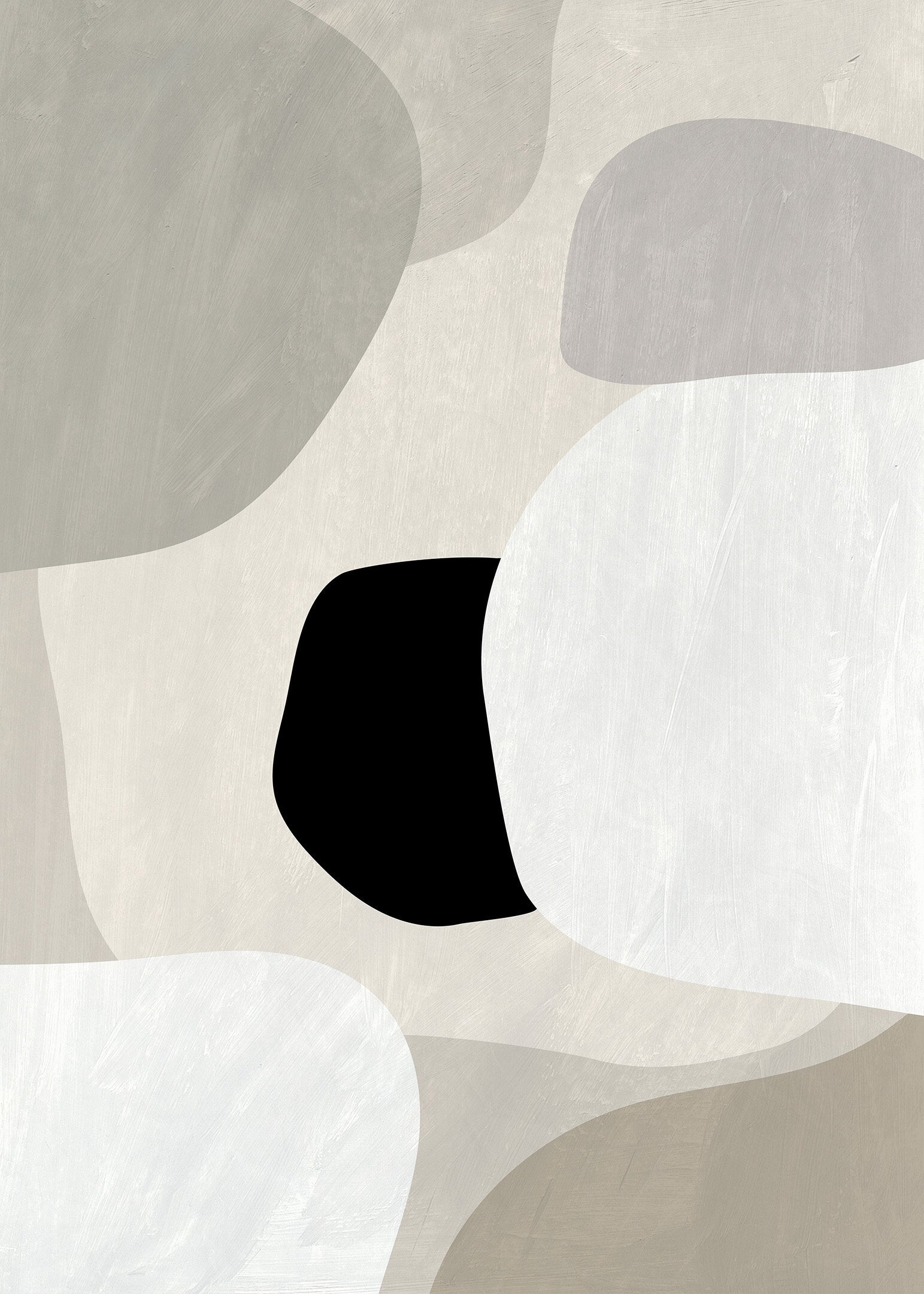 Abstrakt poster som illustrerar flera föränderliga former, fångat i beige och grå toner med svart som accentfärg. Minimalistisk men samtidigt uttrycksfull i all sin enkelhet.