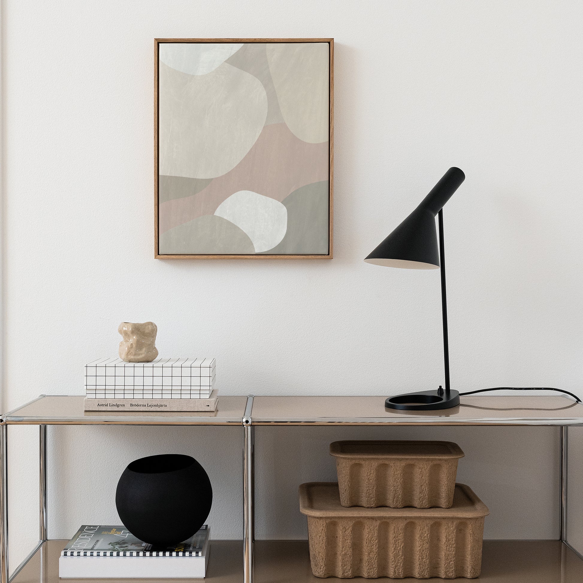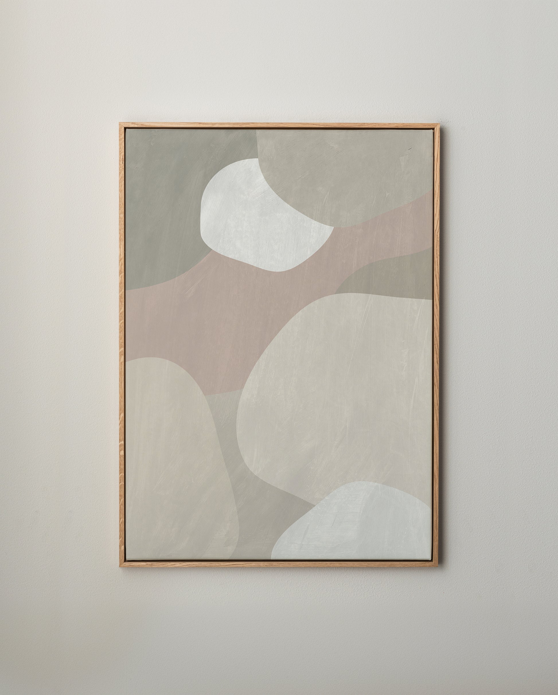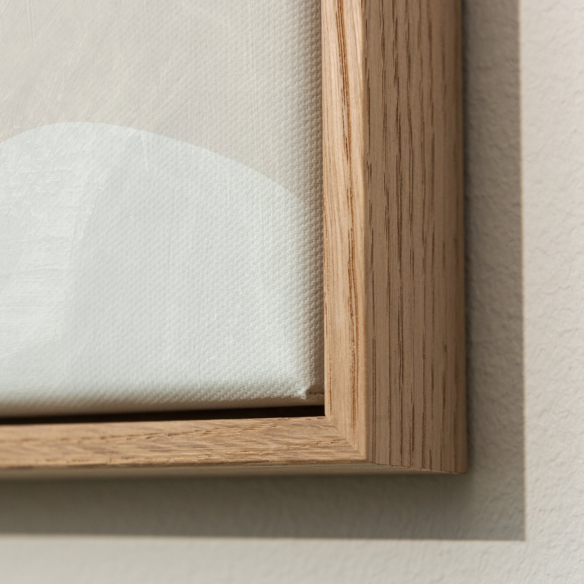 Canvastavla med motivet Organiska ljusa former av kreatören Lina Bakkemose , inramad i en elegant floatram i ek. Motivet trycks på Hahnemühles 370g Art Canvas Smooth, en exklusiv canvasduk med naturligt vit ton, fantastisk färgåtergivning och högsta arkivbeständighet (hållbarhet).