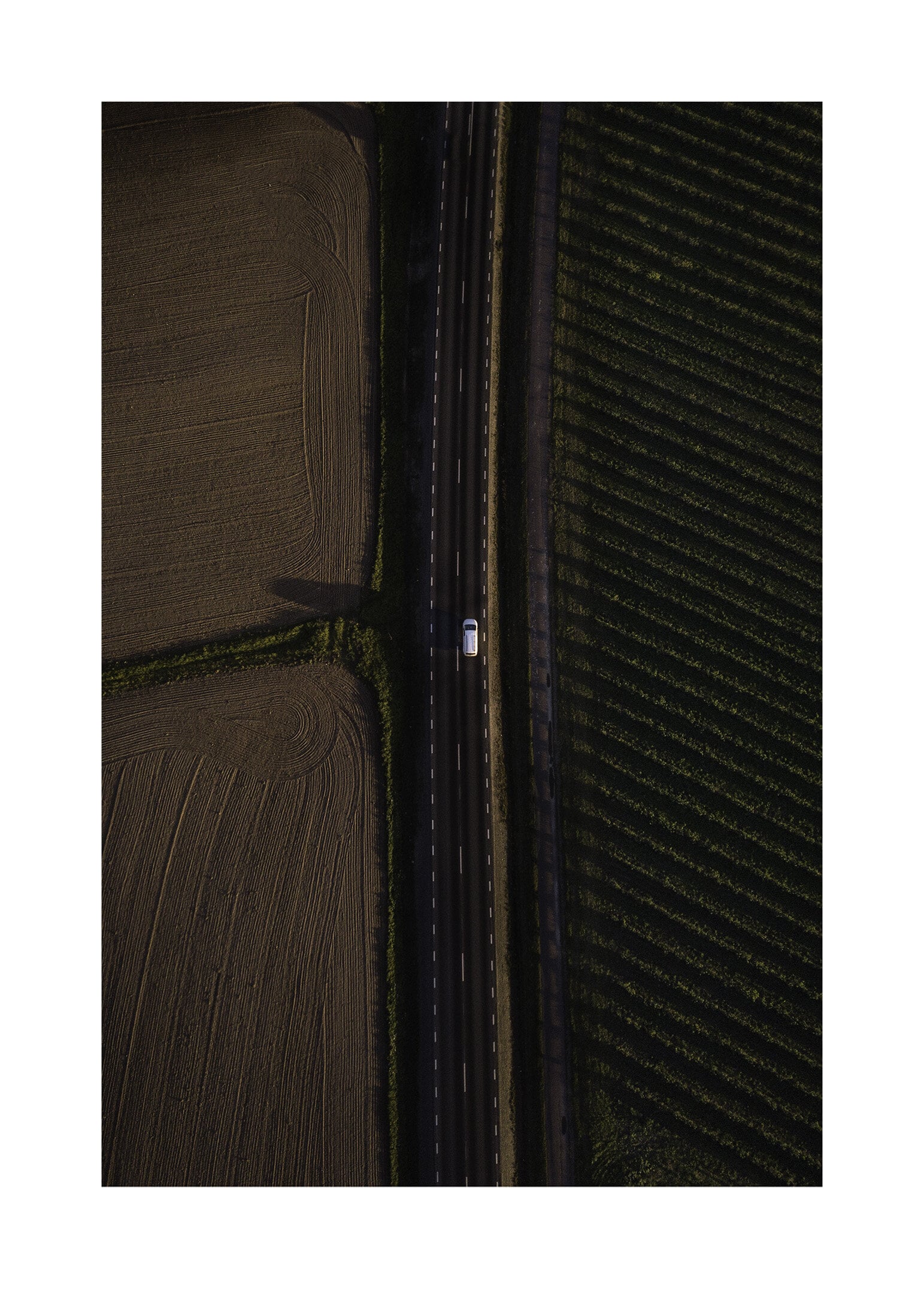 Ett fotografi som blåser nytt liv i Jack Kerouacs berömda uttryck. Väcker eskapistisk känsla och består av en smakfull kombination av färger med vägen som gränslinje.