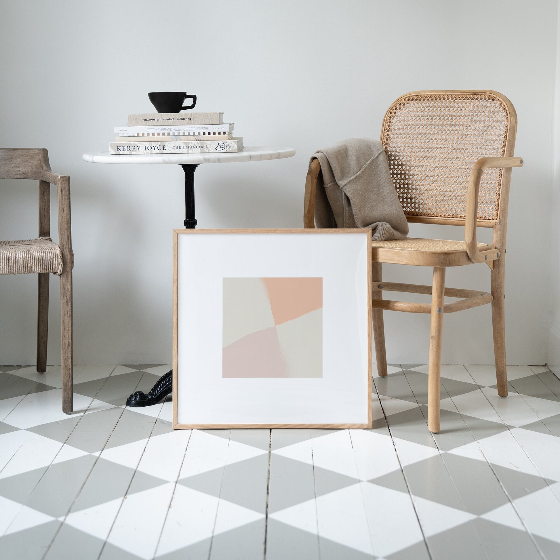 Förnya ditt hem med vår Pastell geometrisk minimalist poster. Denna illustration visar geometriska former i mjuka pastelltoner som skapar en lugn och harmonisk atmosfär. Motivet är fint både stående och liggande.