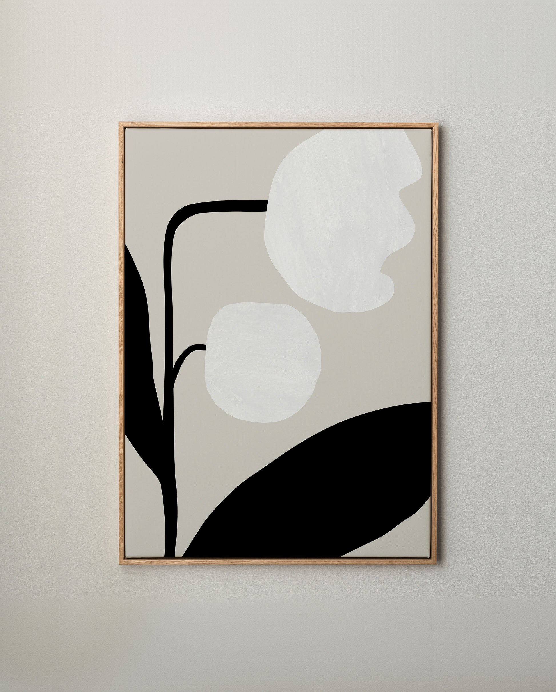 Canvastavla med motivet Pion av kreatören Miriam Gustafsson, inramad i en elegant floatram i ek.