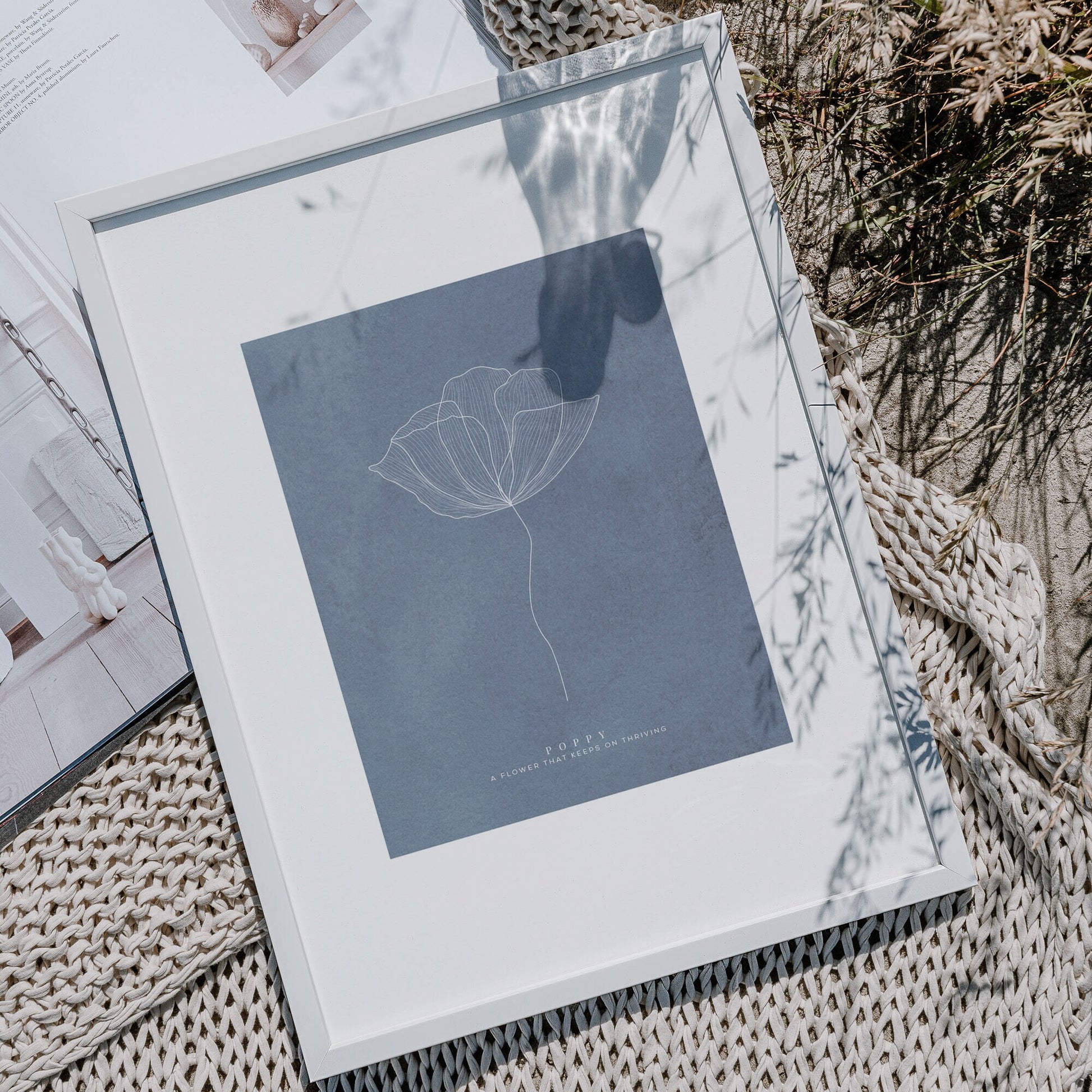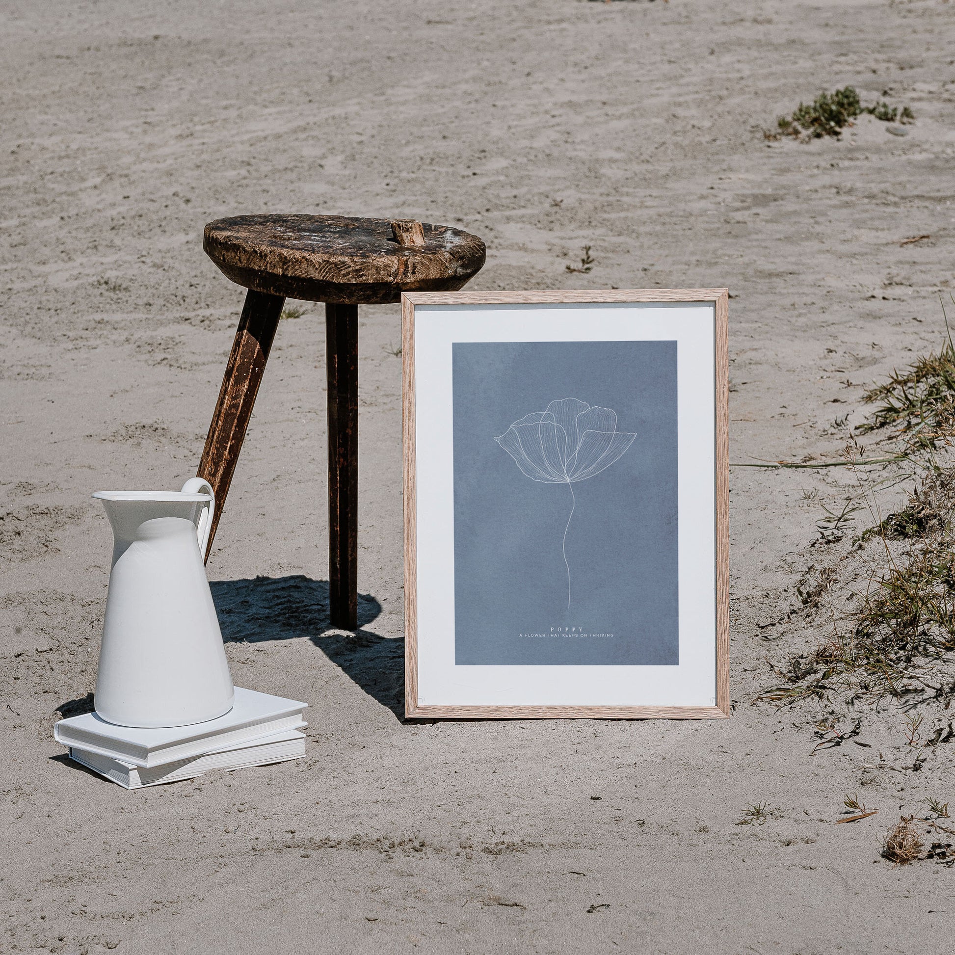 Låt vårt mörkblå vallmomotiv bli en del av din inredning. Med sina djupa blå toner och eleganta linjer är detta motiv perfekt för att skapa en harmonisk atmosfär i hemmet. Passar lika fint som en fristående tavla som en del av en tavelvägg. Designens tidlösa uttryck gör den idealisk för både moderna och klassiska miljöer.