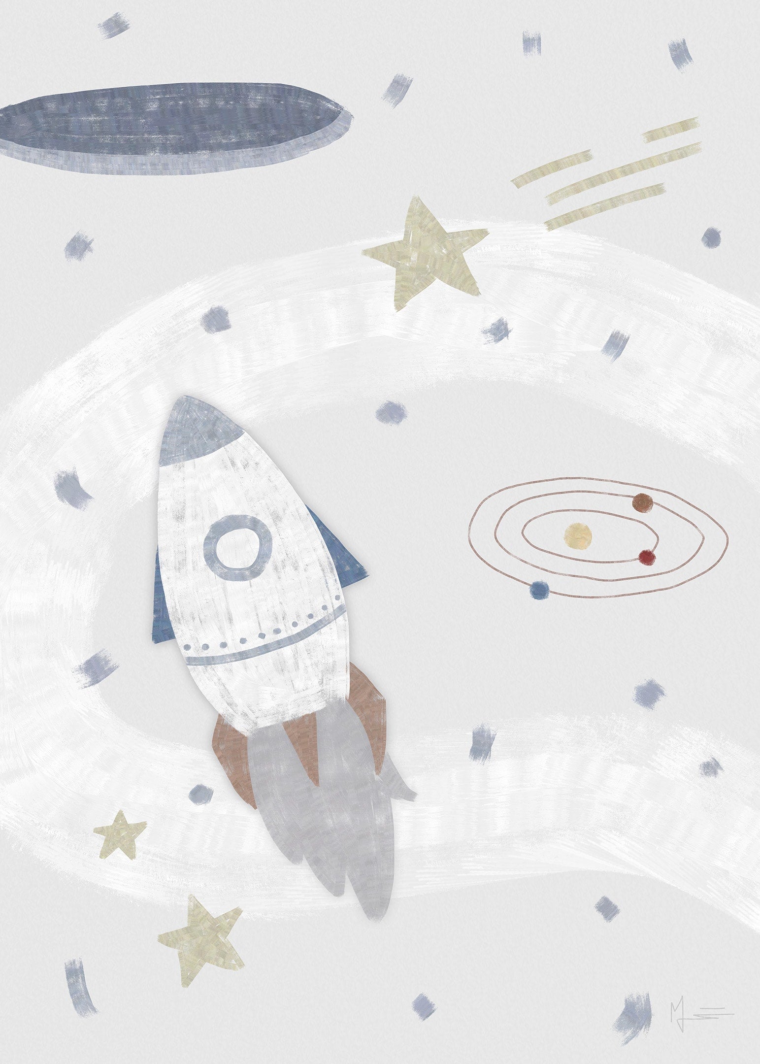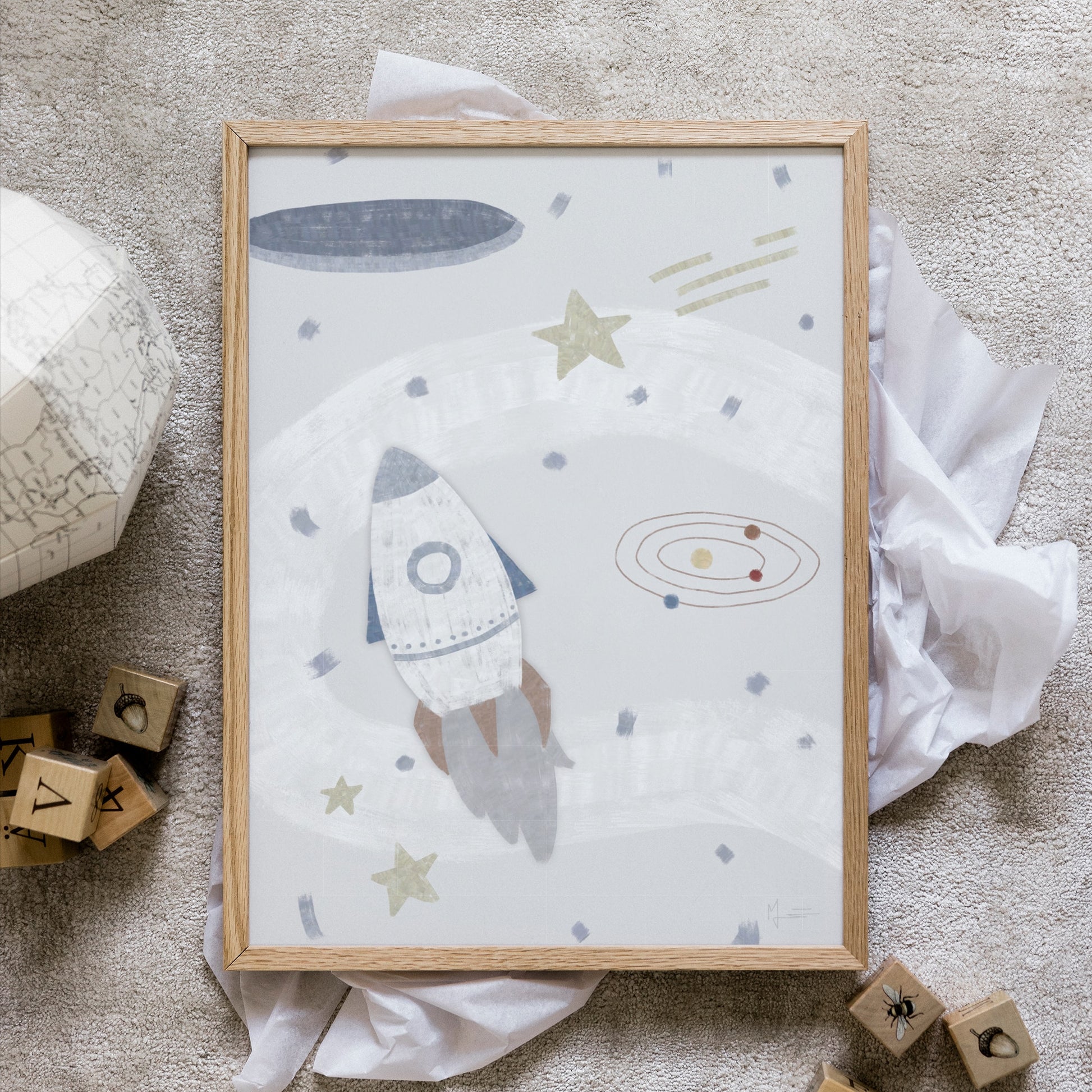 Följ med på en resa ut i rymden med vår Rymdäventyr poster! Detta charmiga motiv visar en raket som susar genom stjärnor och galaxer, perfekt för små astronauter och äventyrare. Skapa en inspirerande atmosfär i barnrummet med detta fantasifulla rymdmotiv. Passar utmärkt för barn som drömmer om stjärnorna och vill utforska universums mysterier.