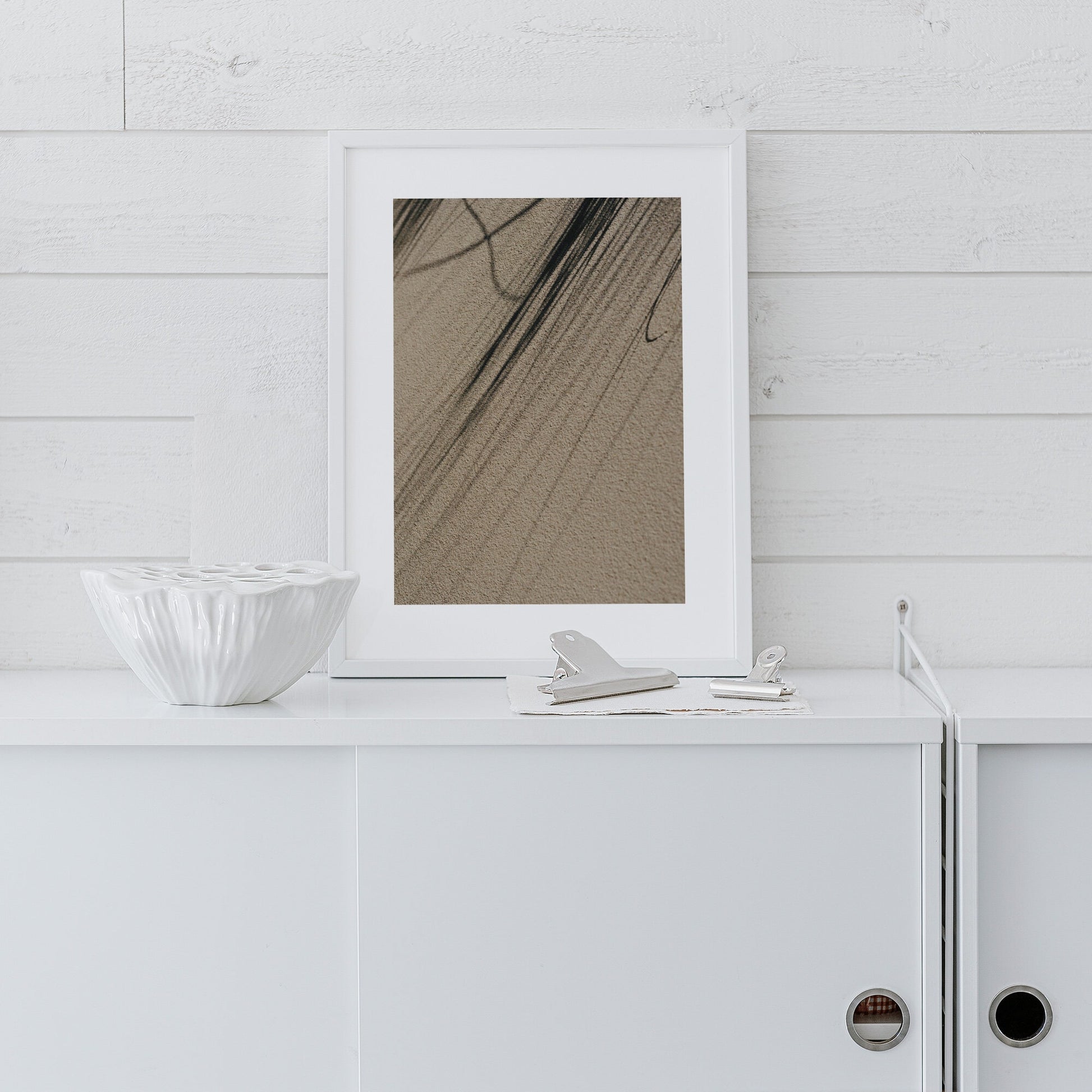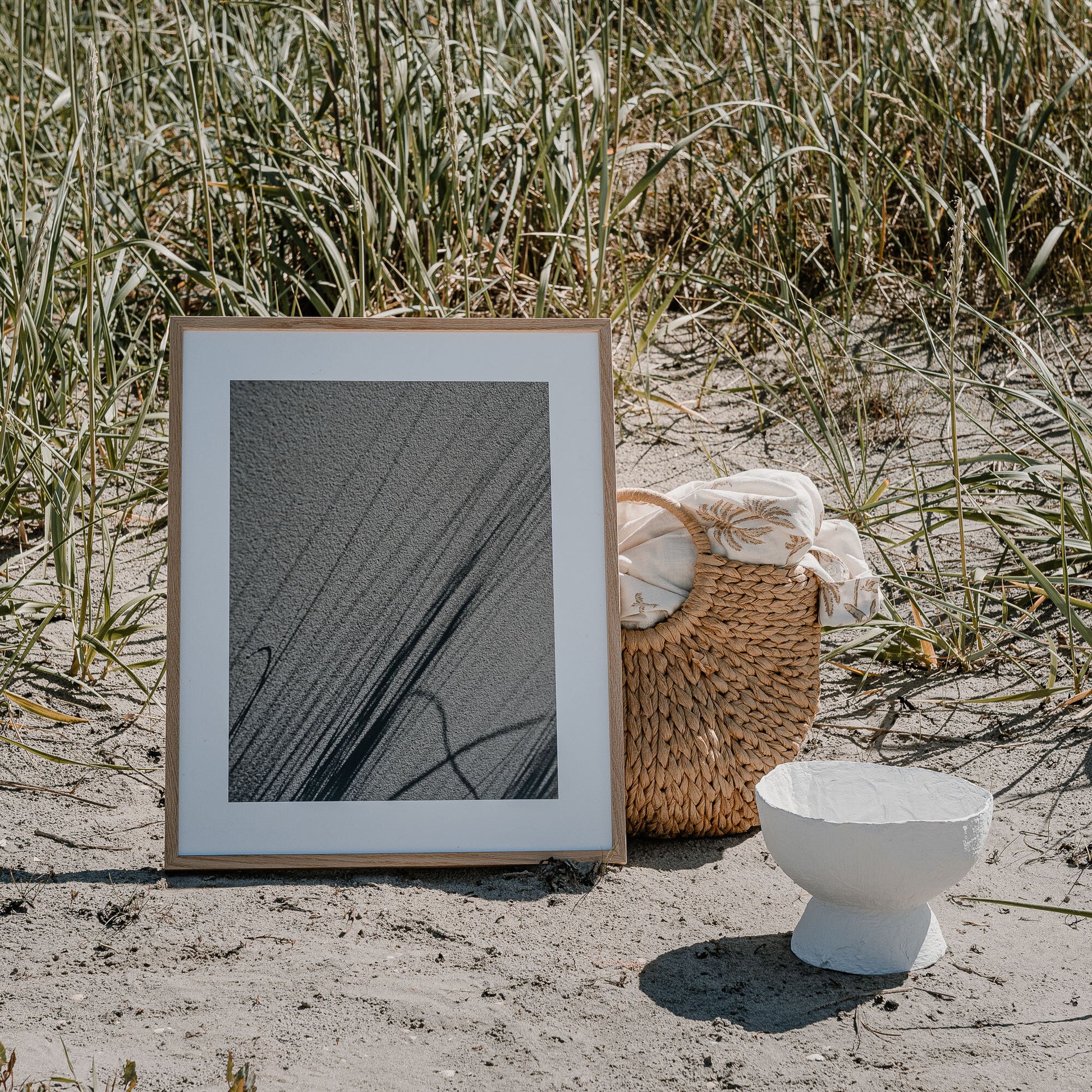 Vassens utsträckta skuggor poster fångar naturens subtila skönhet med mjuka skuggspel på sanden. En harmonisk och minimalistisk bild där ljus och skugga skapar en lugn atmosfär. Perfekt för dig som vill inreda med jordnära toner och tidlös design.