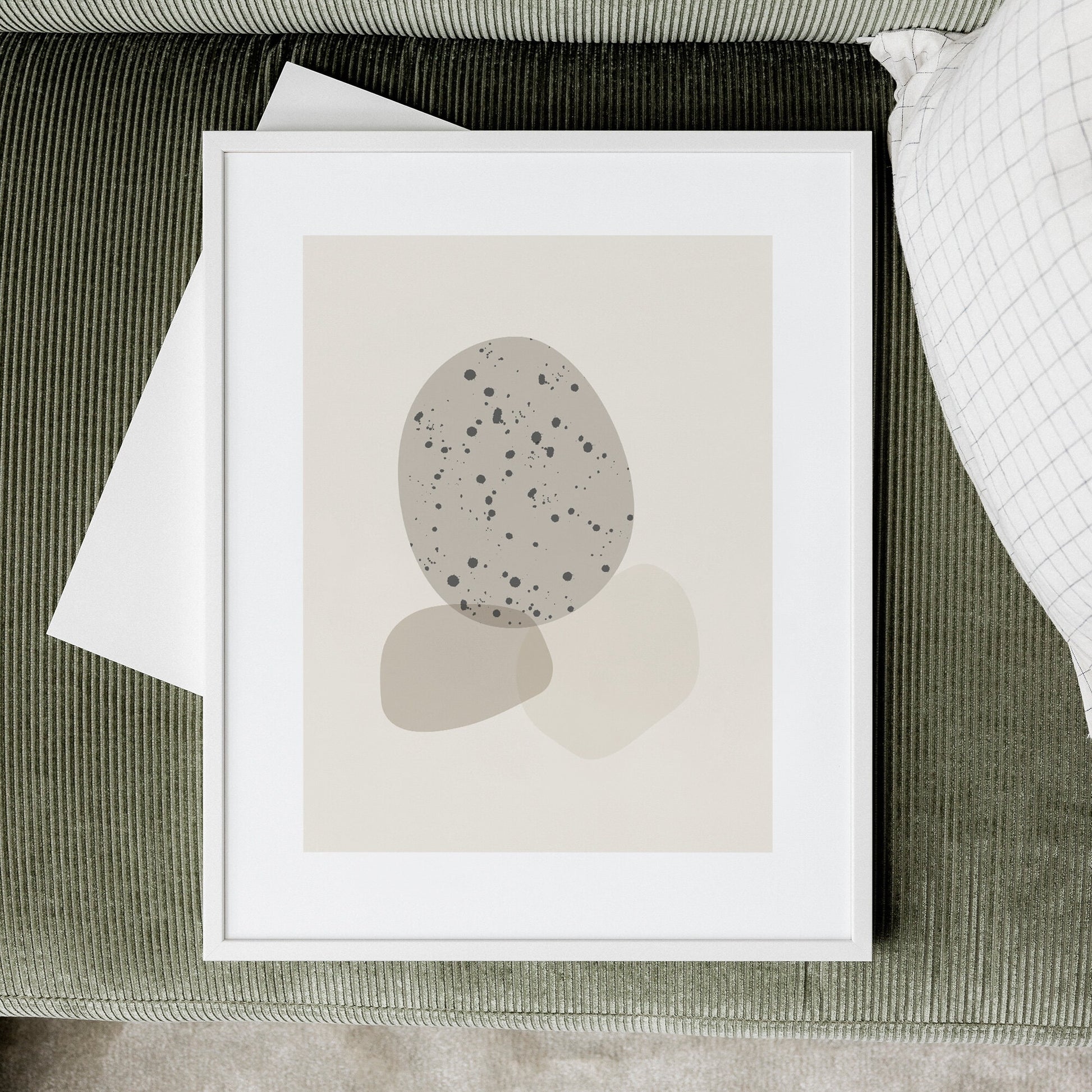 Sandsten poster kombinerar mjuka beiga former med subtila mörka prickar, vilket skapar ett harmoniskt och balanserat uttryck. En stilren och tidlös design som passar perfekt för att skapa en lugn och elegant känsla i ditt hem.