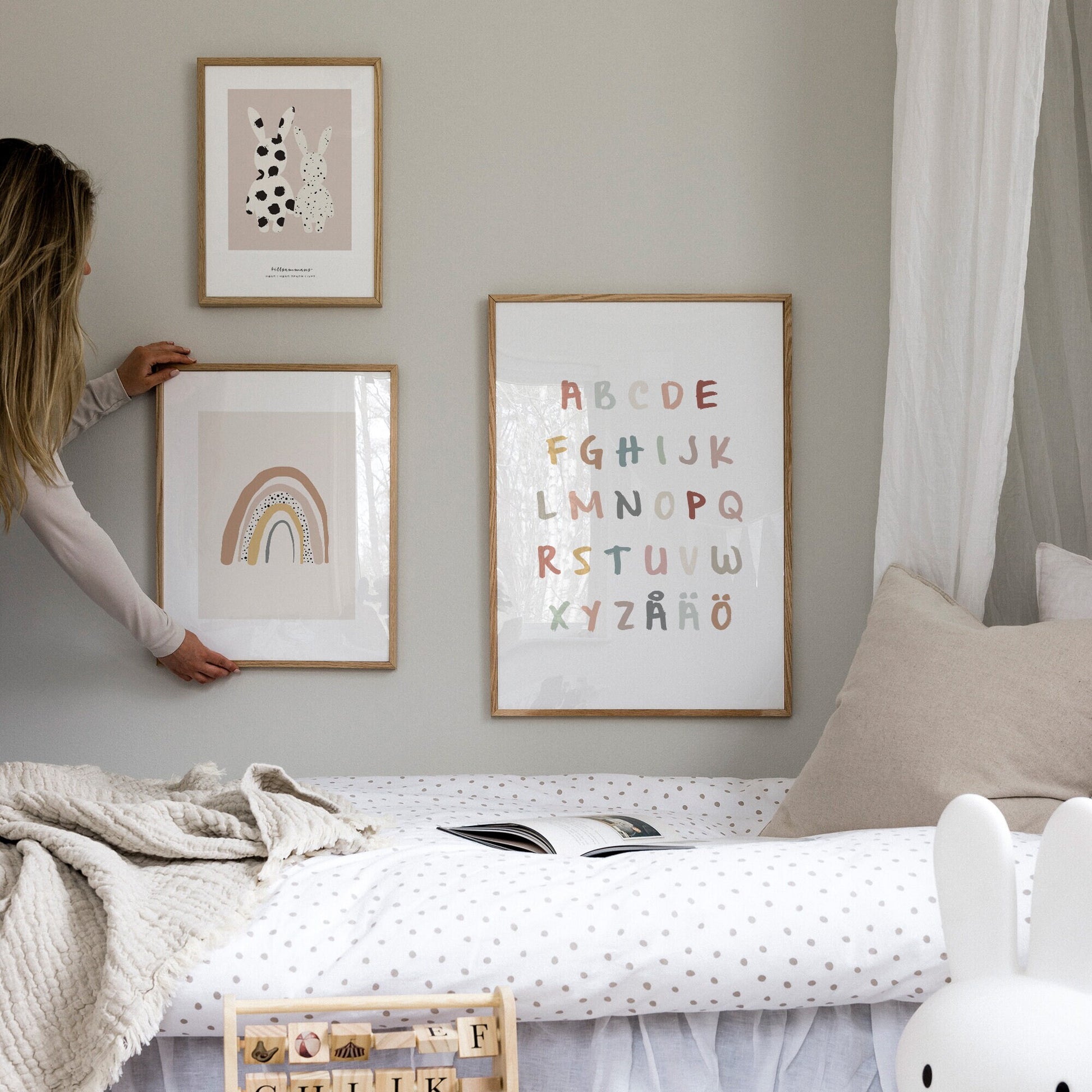 Alla behöver lite extra kärlek och trygghet i livet, stora som små. Postern Små kaninkompisar fångar just den känslan med sitt fina budskap: "Tillsammans, hand i hand genom livet." Ett symboliskt motiv som hyllar syskonband, vänskap och samhörighet. Perfekt till barnrummet, som en meningsfull present till ett syskonpar, eller en fin gåva till en förälder och barn. Enkel och stilren design i mjuka toner som smälter in i alla miljöer – lika fin ensam som i en tavelvägg.