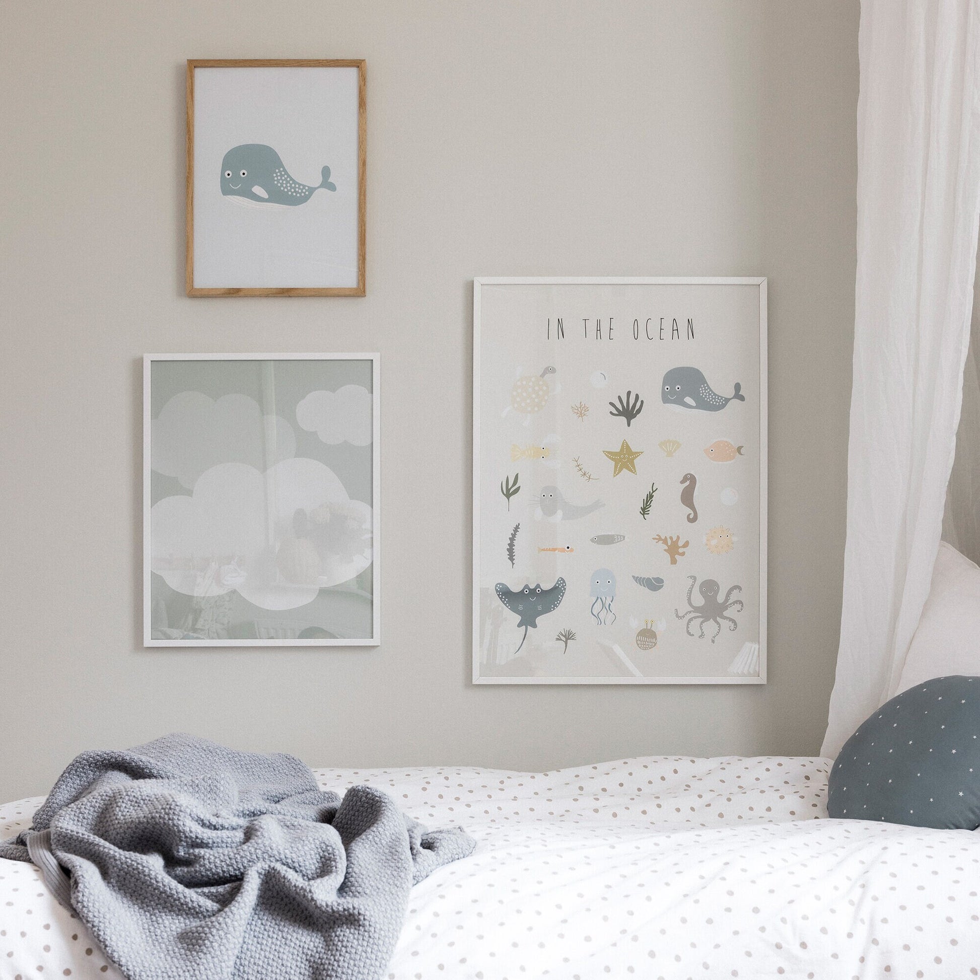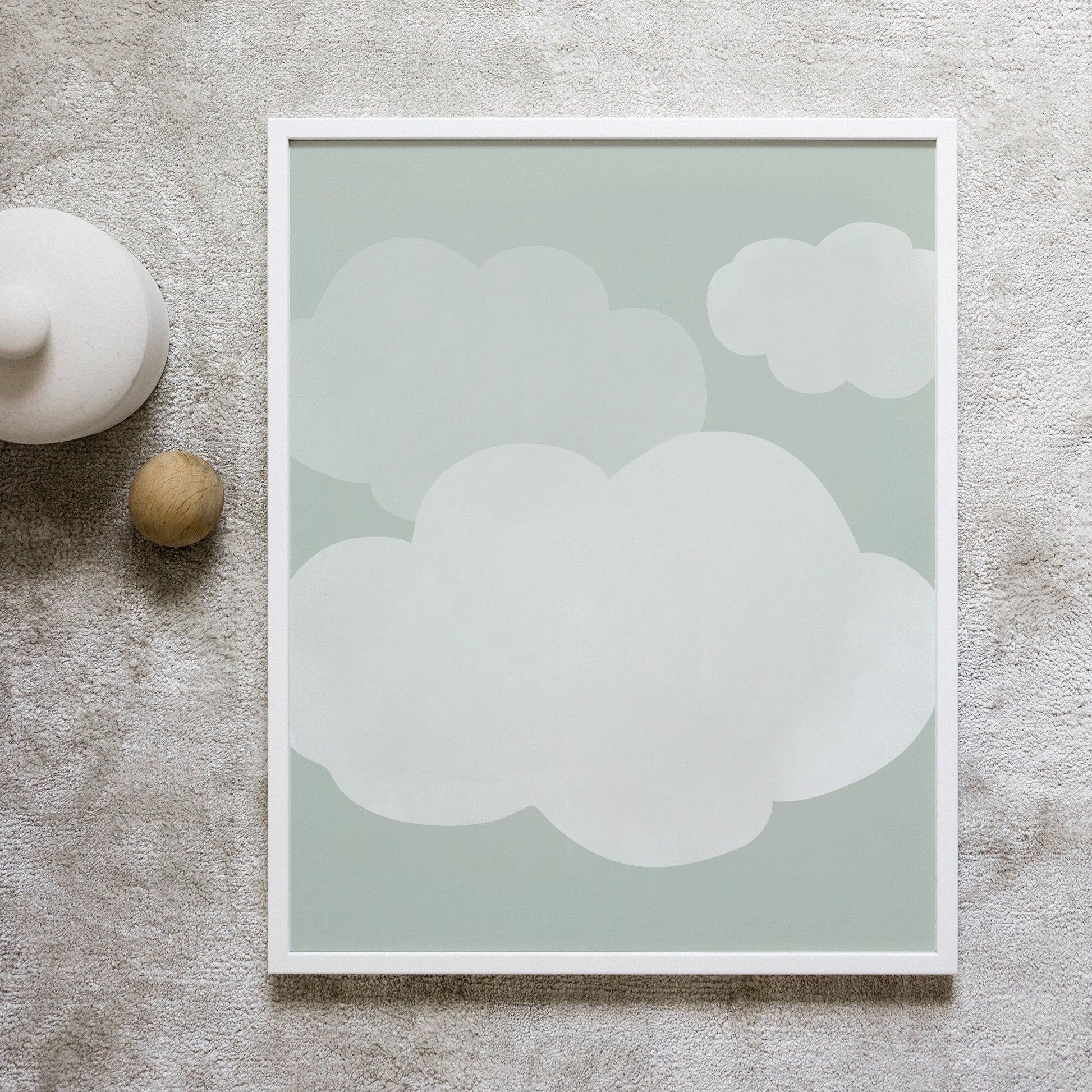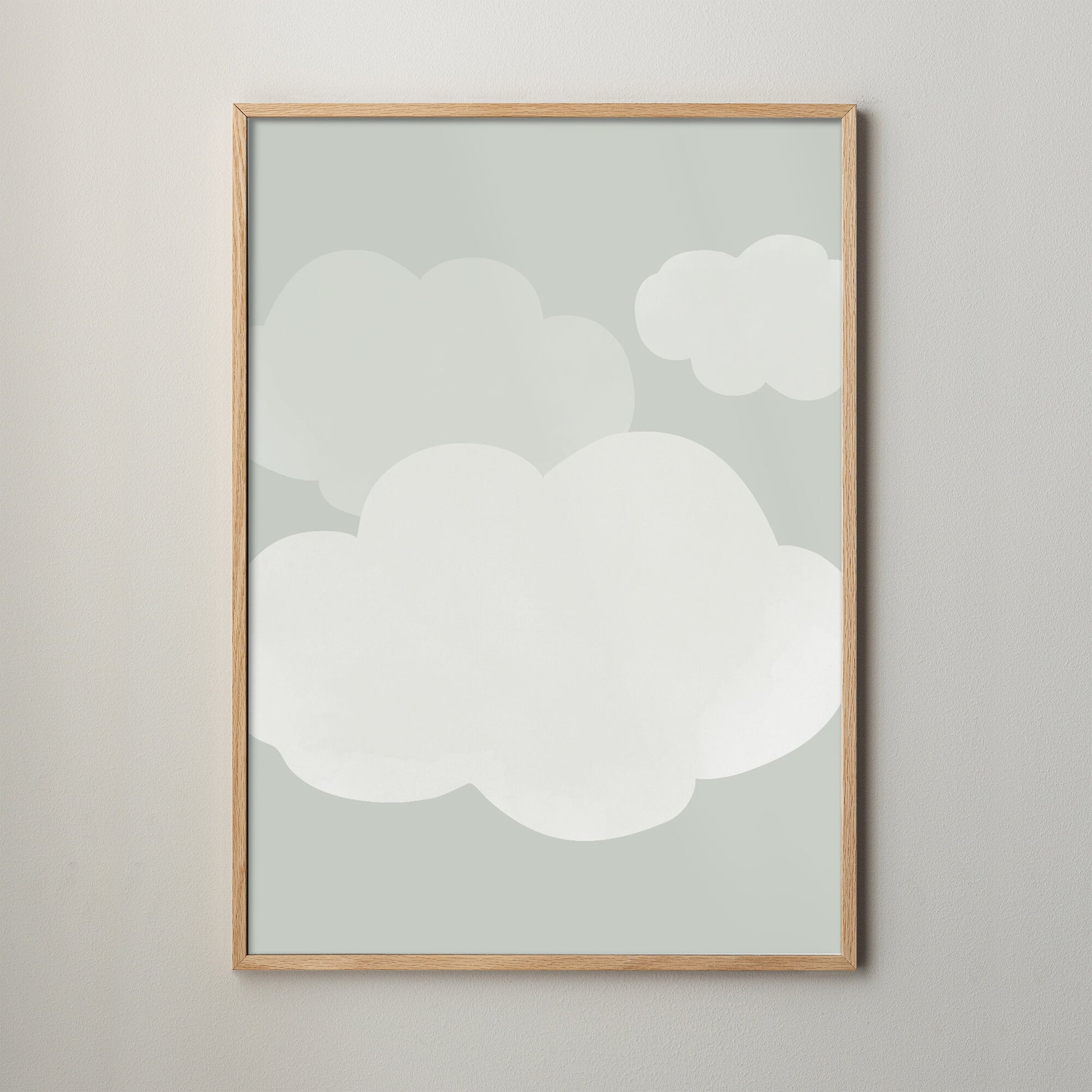 Små lätta moln poster illustrerar gulliga moln i en mjuk färgställning. Lätt att väva in i barnrummets tavelvägg eller placera precis ovanför barnsängen, och bjuda in till söta drömmar.