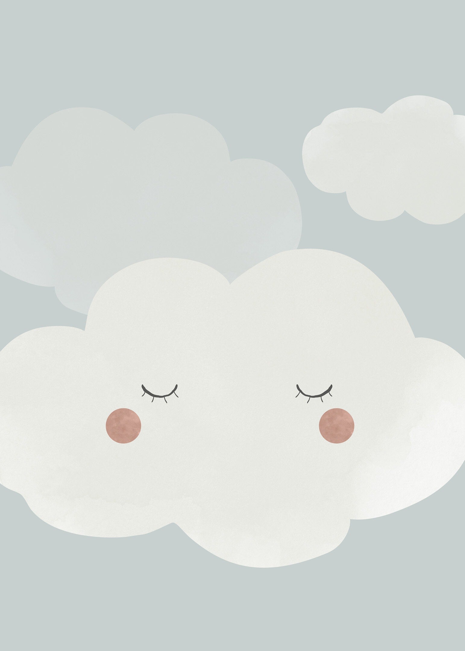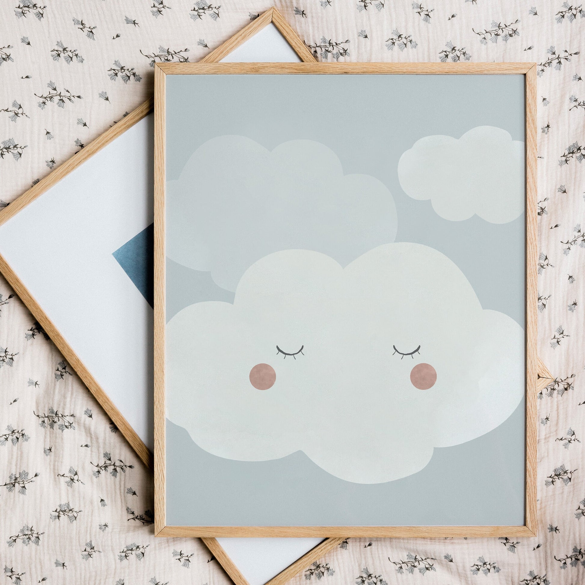 En mjuk och harmonisk poster med ett sömnigt moln i lugna blå nyanser. De milda färgtonerna och de lekfulla detaljerna skapar en rogivande atmosfär och gör motivet till en perfekt detalj i barnrummet. Passar lika fint som en del av en tavelvägg eller för sig själv som en lugnande dekoration.