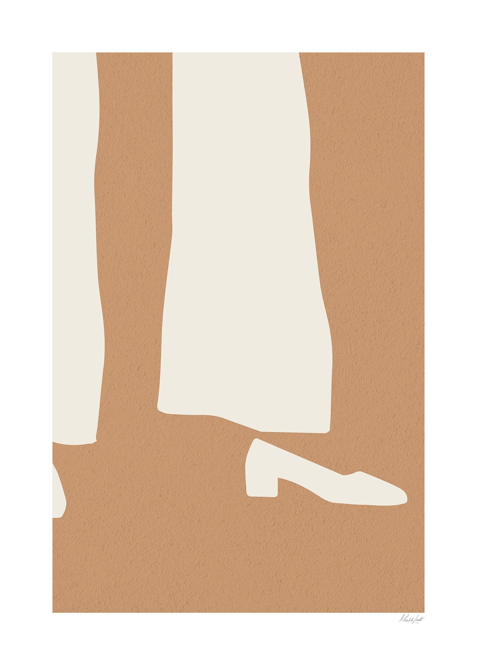 Grafiskt motiv med inspiration i klassiskt, kvinnligt mode. Motivet finns i tre färgställningar, här ser vi beige illustration mot bakgrund i terrakotta.