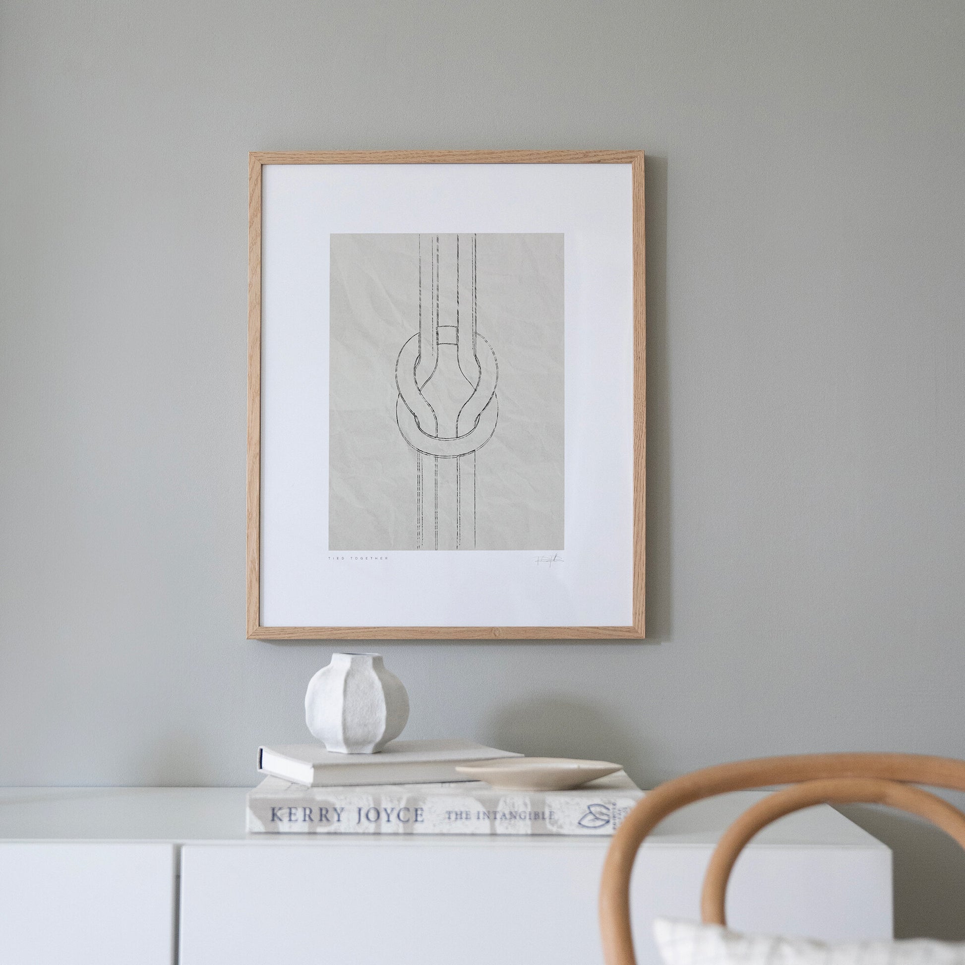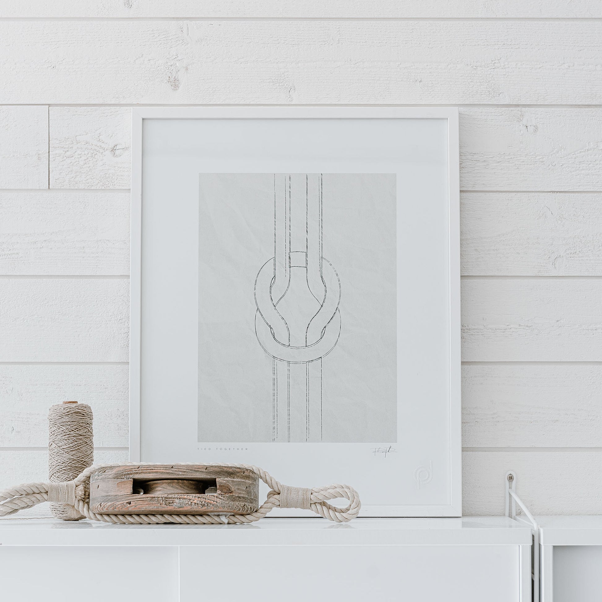 Tied together är en elegant illustration av en knop, tecknad med blyertsliknande linjer för en naturlig och handritad känsla. Mot en mjukt texturerad bakgrund skapas ett tidlöst uttryck som passar lika bra i ett modernt hem som i sommarhuset. En symbolisk och estetisk detalj för den som uppskattar minimalistisk design med ett subtilt budskap om sammanhållning och styrka.