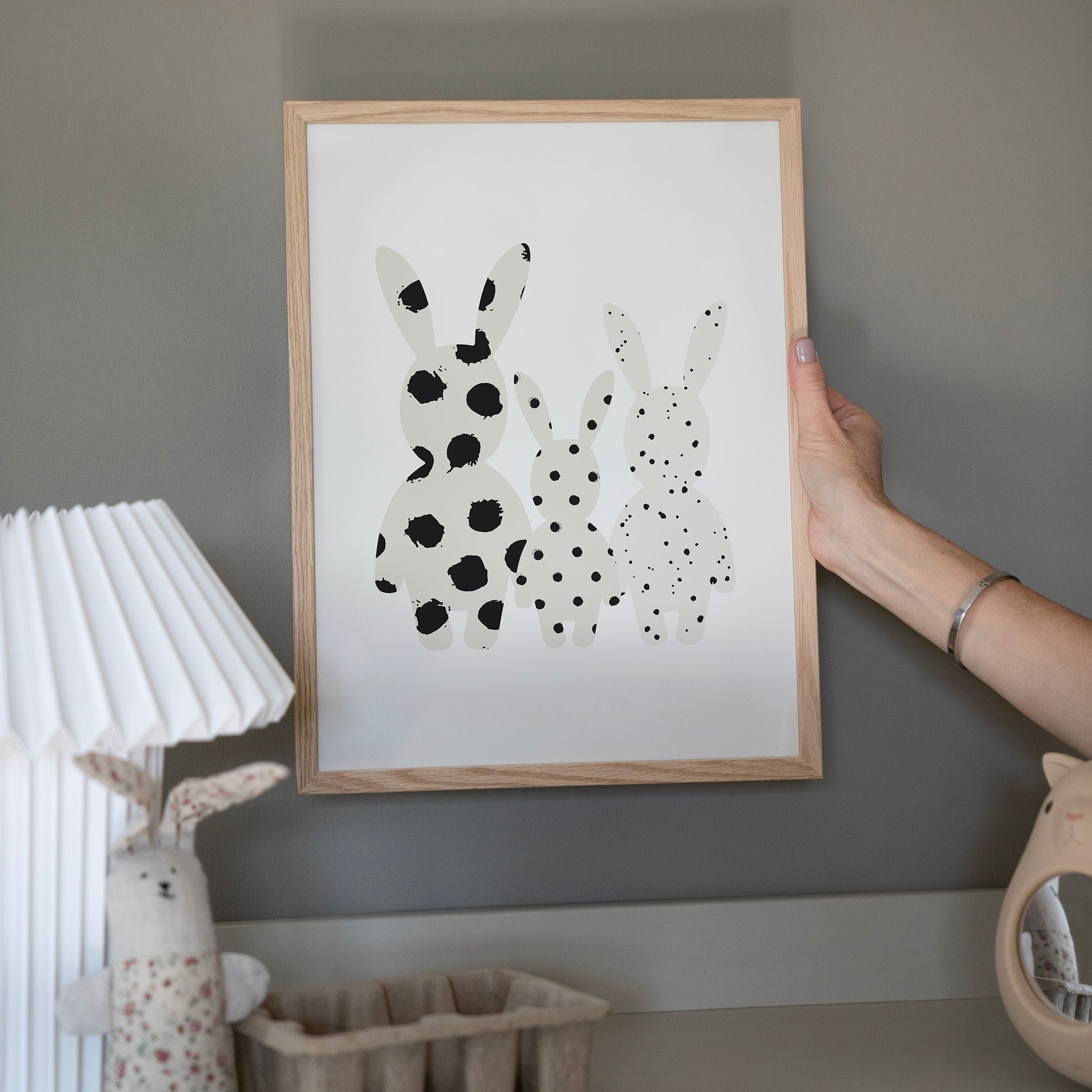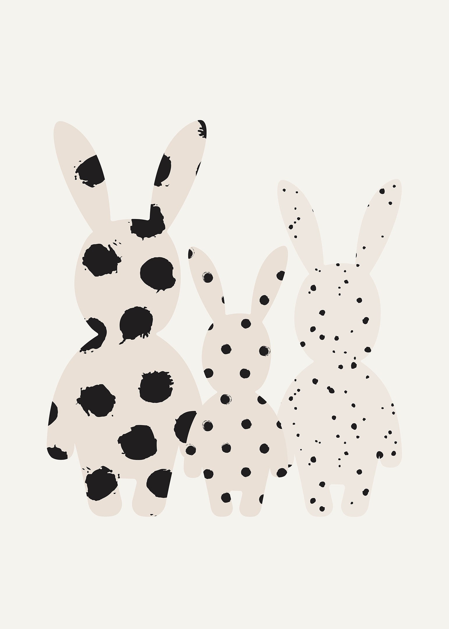 Våra populära barnmotiv blir fler! Triss i kaninkompisar är perfekt för att symbolisera syskonskaran, eller mini med sina bästa vänner.