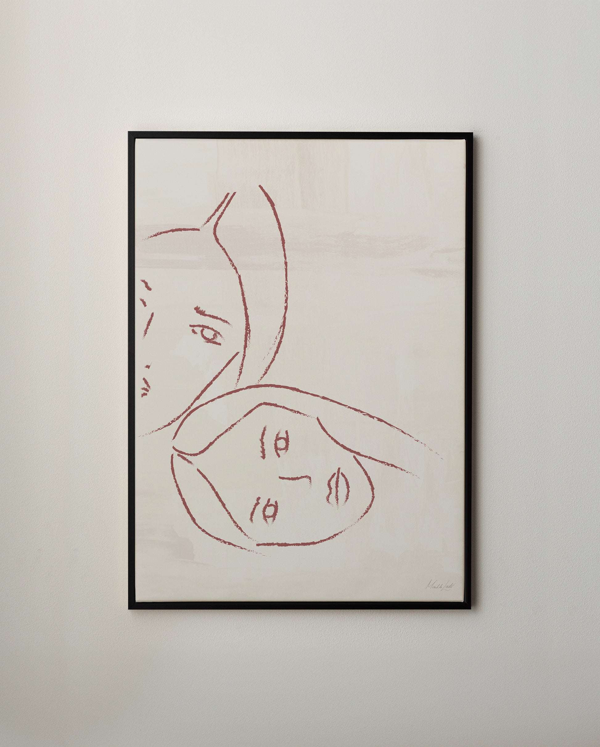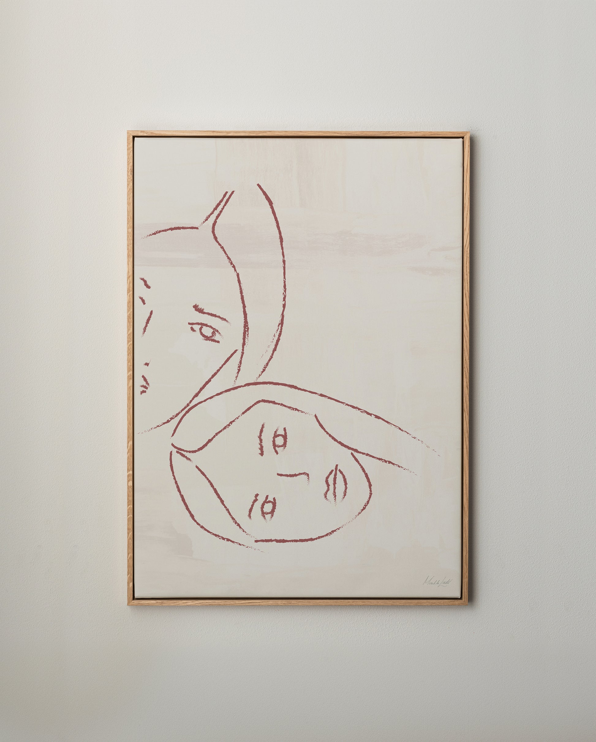 Canvastavla med motivet Trygghet i beige av kreatören Michaela Lindvert, inramad i en elegant floatram i ek. Motivet trycks på Hahnemühles 370g Art Canvas Smooth, en exklusiv canvasduk med naturligt vit ton, fantastisk färgåtergivning och högsta arkivbeständighet (hållbarhet).