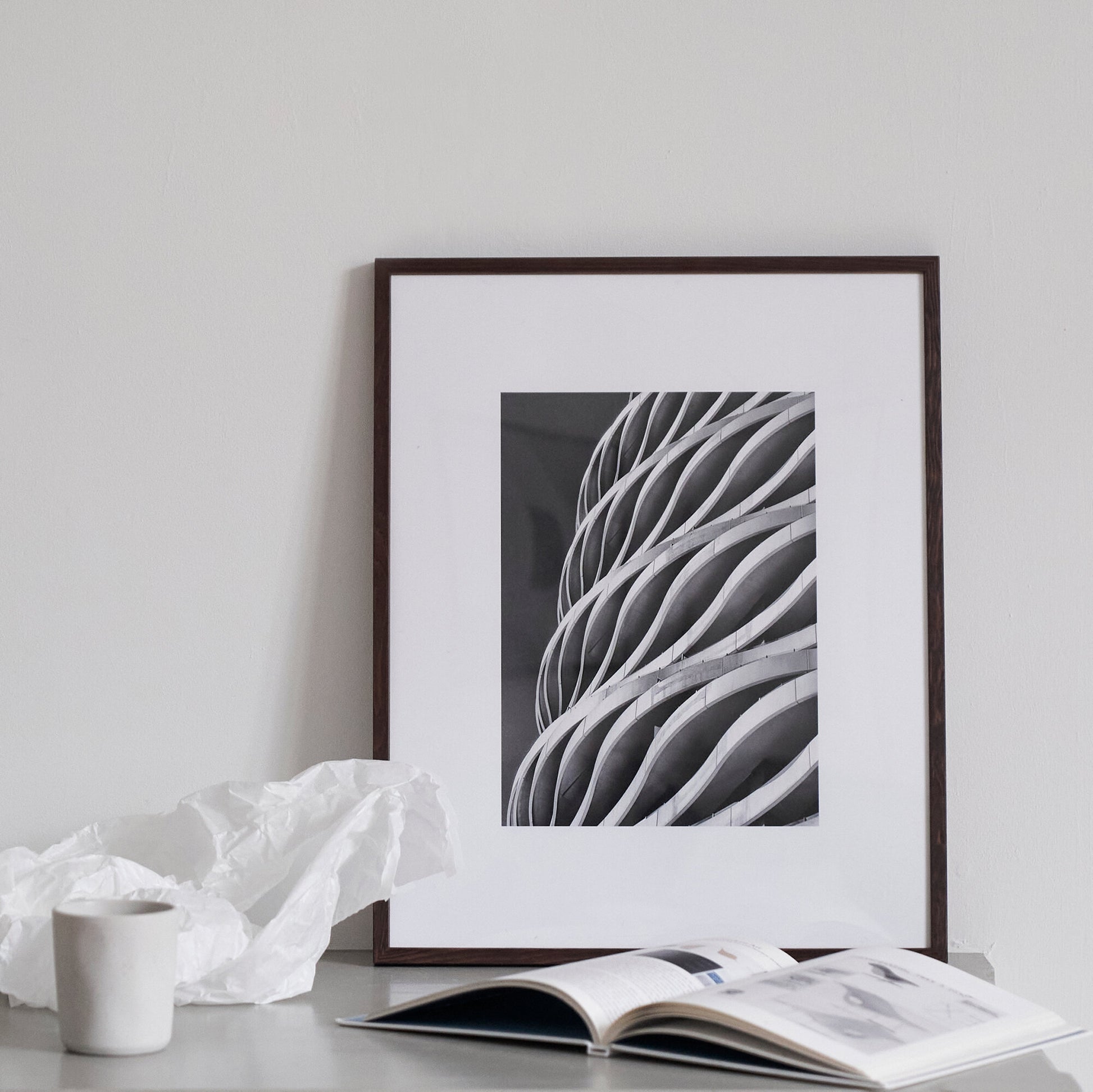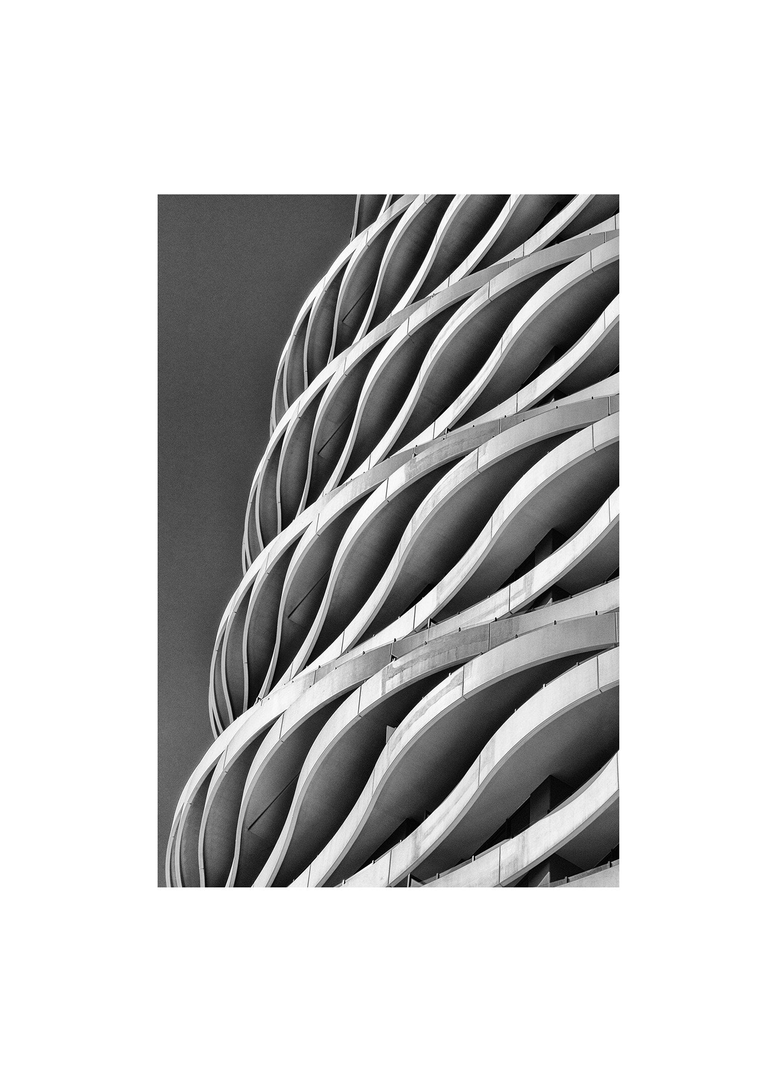 Svartvitt fotografi av en läcker betongbyggnad i Australien.