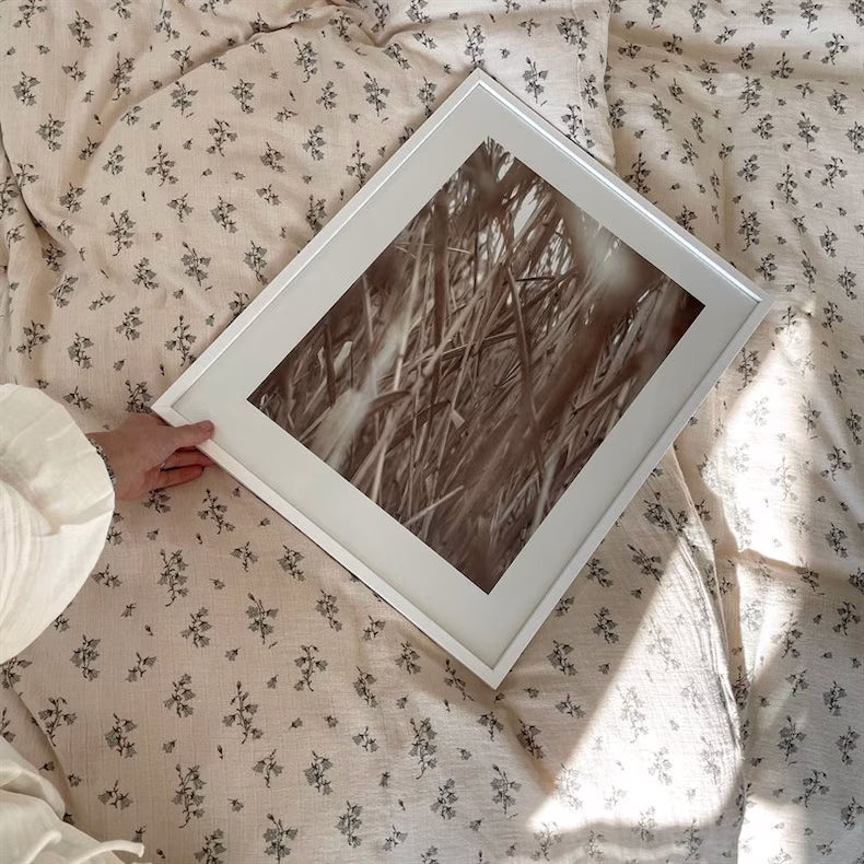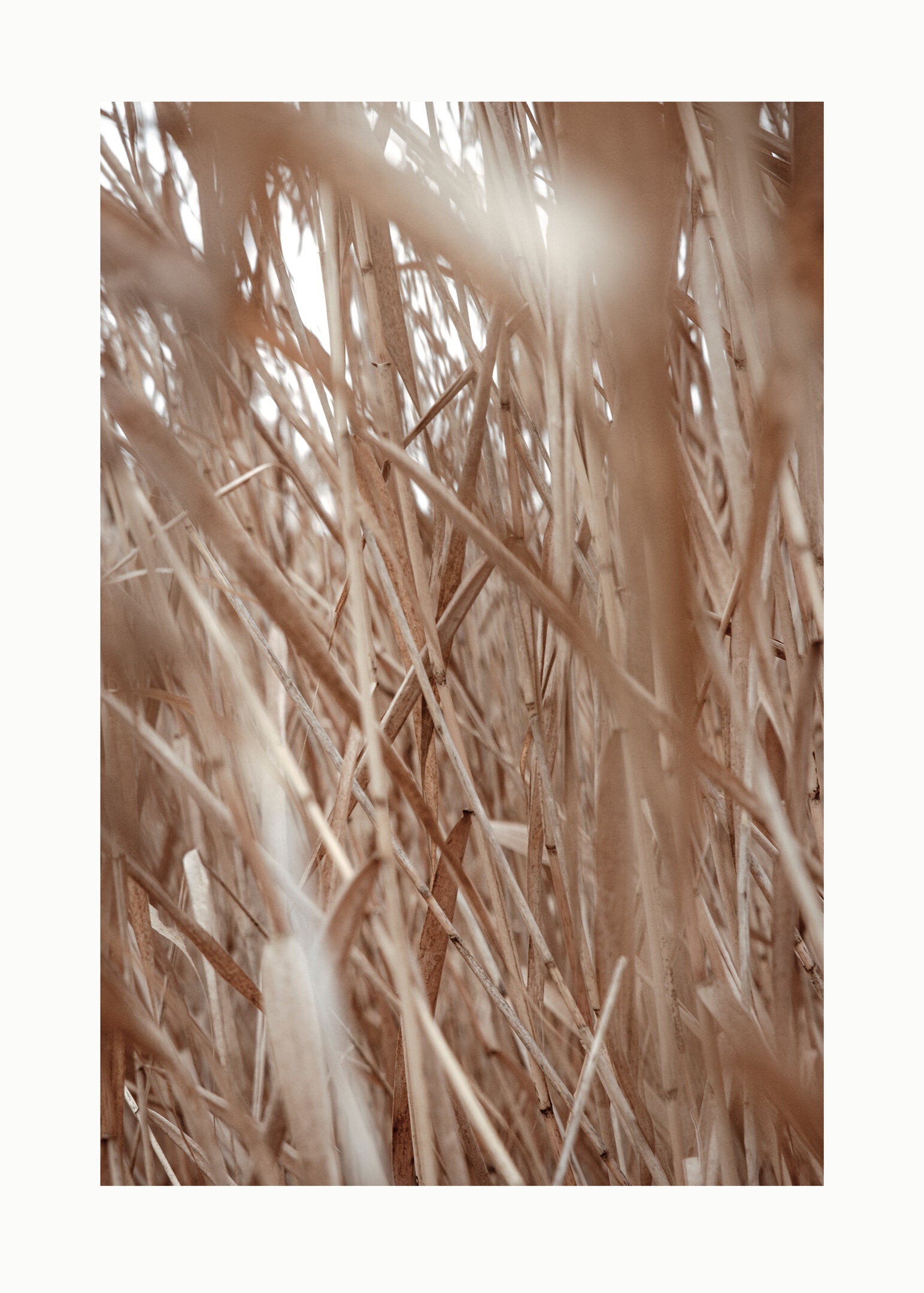 Vasstrån fångade i närbild, som förmedlar naturens enkelhet och skönhet. Med sin avslappnande estetik passar detta motiv perfekt i både vardagsrum och kök, och skapar en lugn och harmonisk atmosfär i hemmet.