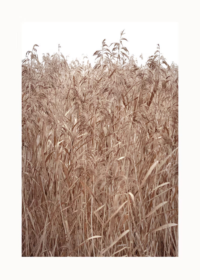 Ett elegant fotografi av tätvuxen vass i naturliga jordtoner. Perfekt för att skapa en harmonisk atmosfär i ditt hem och kombinera med andra naturinspirerade motiv.
